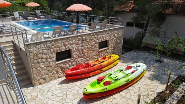 Přečtěte si více Ubytovací jednotkyThe house consists of 2 duplex apartments, which may use the pool, recreation room and barbecue. The landlord lives in the neighboring house and takes care of the pool, recreation room and garden. Changeover day: from 15. 6. 2019 until 7. 9. 2019 Saturday, otherwise flexible. Check in from 16:00 - Check out not later than 10:00. Deposit: 20% by bank transfer. Remaining 80% not later than 35 days before the arrival date. Cancellation fee: from 35 days before the arrival date: 20%, 0 - 34 days before the arrival date: 80%. Between 22:00 and 8:00 please be respectful of neighbors.