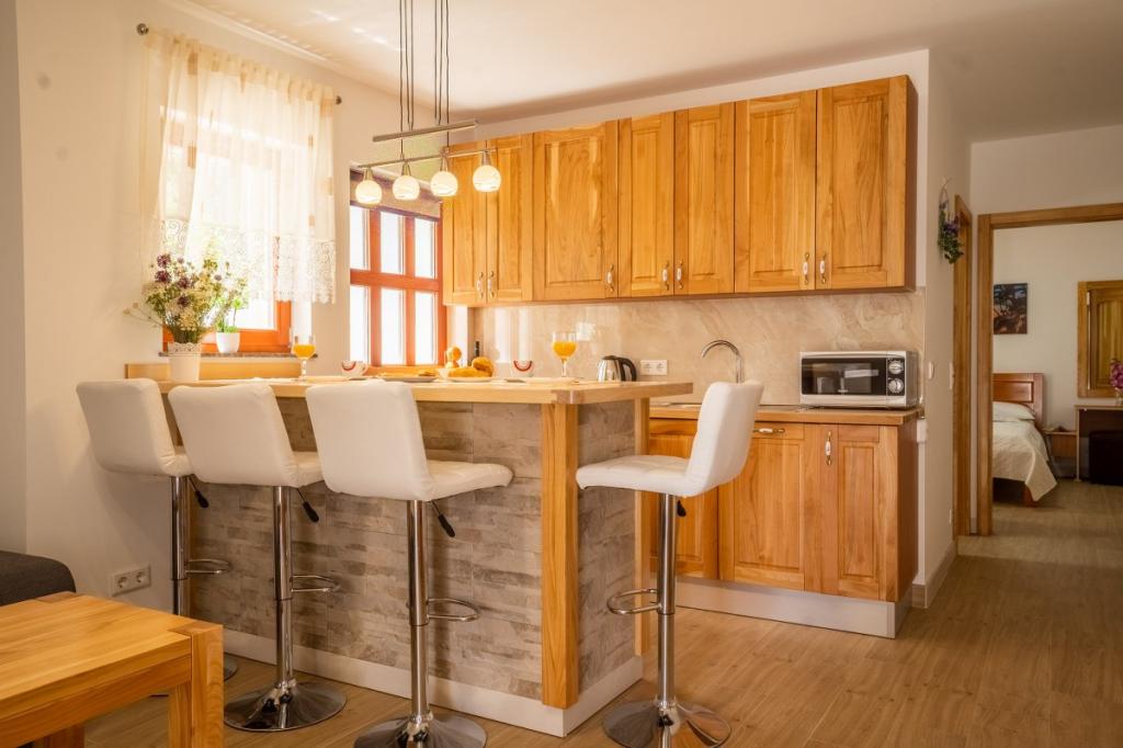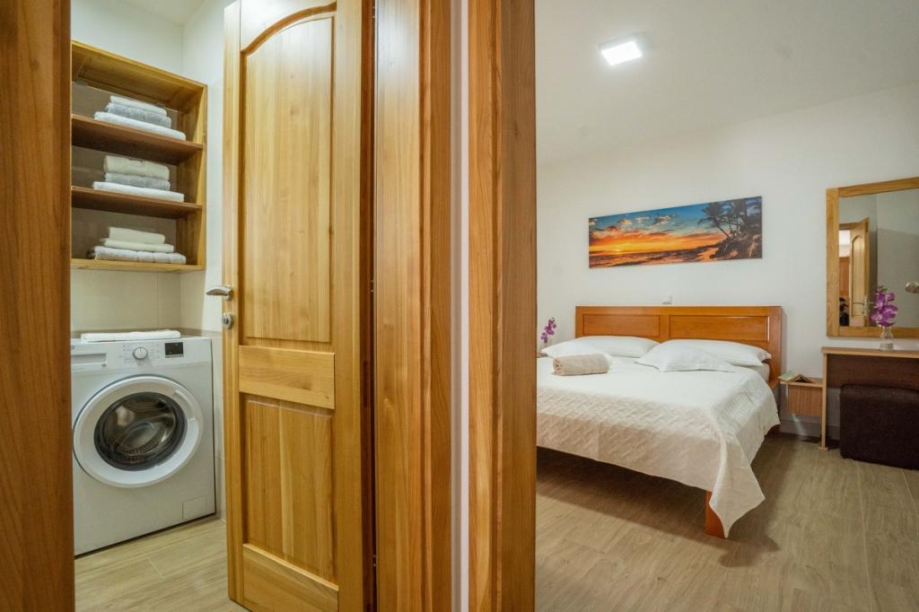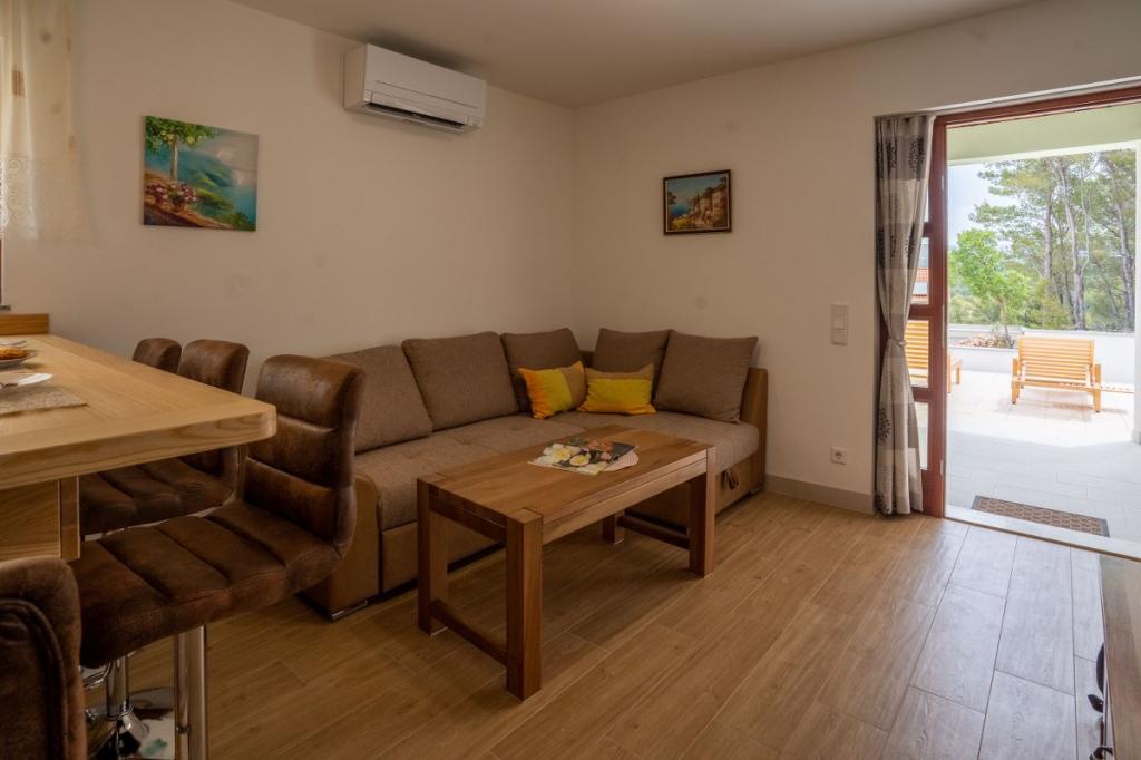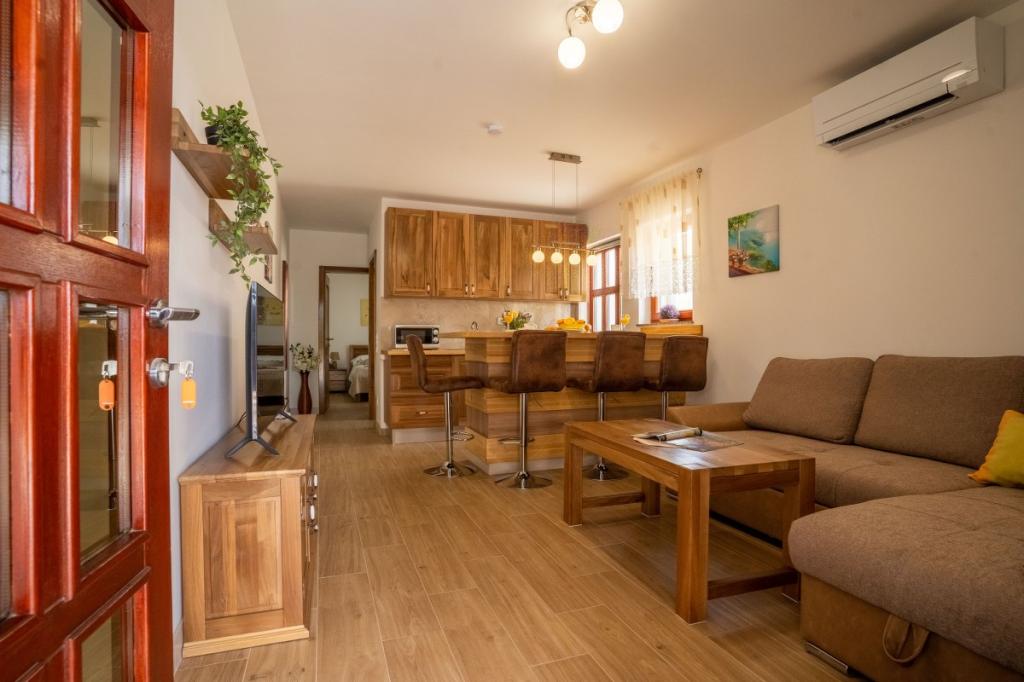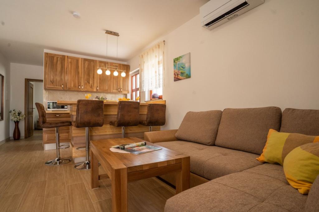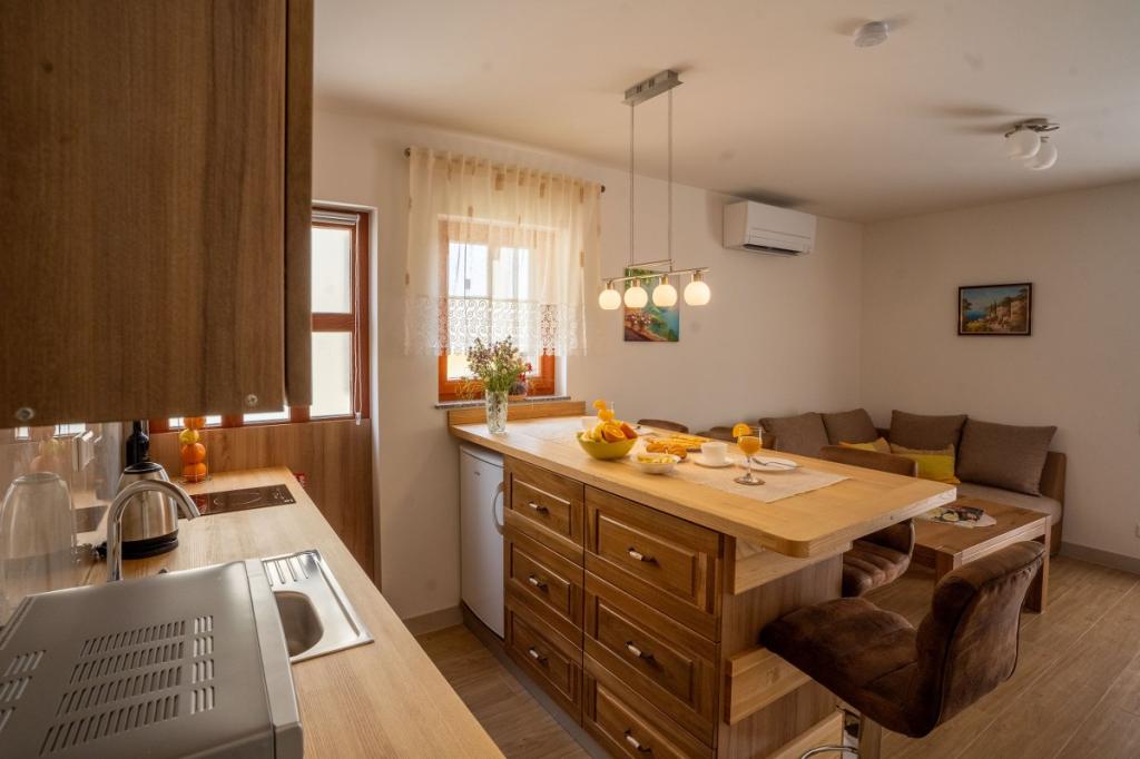 Villa Kalinić se skládá ze dvou apartmánů. Jeden se jmenuje Cherry, protože 80 % nábytku je vyrobeno z třešňového dřeva, a druhý se jmenuje Walnut apartment, protože je vyroben z ořechového dřeva.Každý kus nábytku je autentický a ručně vyrobený hostitelem, který je velmi dobrý a zkušený truhlář.Oba apartmány mají jednu ložnici s manželskou postelí a velkou šatní skříní, do které se vejde celý váš šatník. Dále má koupelnu s velkým sprchovým koutem a pračkou. Oba apartmány mají poměrně velkou kuchyň s veškerým potřebným kuchyňským vybavením, která je nová.obývací pokoj se skládá z pohodlného gauče pro sledování televize, který zároveň slouží jako přistýlka.Venku je byt velmi prostorný pro jídlo nebo pití na dřevěných lehátkách.