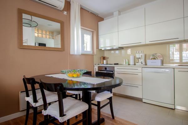 Bydlení v Mimicích je perfektní volbou. Je to skvělá základna pro návštěvu dynamičtějších měst a pak se vrátit a odpočinout si od lidí. V bytě nám nic nechybělo, stojím si za svými předchozími komentáři o pohodlí a čistotě bytu (je opravdu čistý, vše velmi uklizené). Kuchyně byla vybavena jako u vás doma, hrnce čisté, nové, udržované (a vzal jsem si s sebou změkčovač masa a vlastní pánve, kdo ví? To není standardní. Byli jsme s manželem a 10letým synem a měli jsme dostatek prostoru, čtyřčlenná rodina zde může pohodlně trávit čas. Výhled z balkonu je krásný. Obchod je kousek od Studenacu, koupit nějaké rohlíky k snídani není problém, vše potřebné koupíte v obchodě. Sejdete po schodech na pláž, po strmém chodníku, cesta zpět může být vyčerpávající, ale výhledy stojí za to. Nejbližší pláž je Juto - pěkná, ale raději jsme jeli o kousek dál do Kutles, obě lehce v dosahu apartmánu. Co se týče parkoviště, jedná se o soukromé místo na straně hlavní silnice, pokud chcete vjet na pozemek (to je druhá možnost), musíte počítat s velmi prudkým klesáním, ne každé auto bude schopen to udělat. Můj manžel nechtěl obtěžovat spojku tak jsme si vybrali místo na kraji silnice a musím říct, že to bylo v pohodě - nutilo nás to jít ven a udělat si nějakou prohlídku, protože opuštění parkoviště bylo jednodušší než obvykle. Celkově vzato to byl náš nejlepší výlet do Chorvatska. Upřímně doporučuji byt.