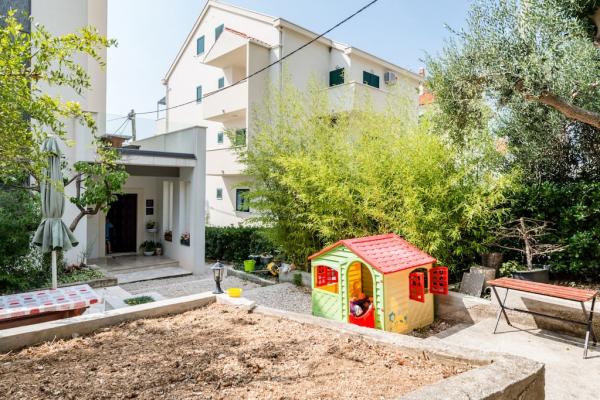 Náš dům se nachází v malé klidné obci Medici. Medici byl známý pro své nádherné pláže s křišťálově čisté vody a borovice stínu. Ideálním místem pro relaxační dovolenou a užívat přírody. Chcete-li se podívat kolem pobřeží se nachází v blízkosti, Omiš 11 km, Makarska 26 km a 35 km Rozdělit. V domě je 5 apartmánů, 4 pro dvě osoby a jeden apartmán pro 4 osoby. Dům je ve vzdálenosti 50 m od krásné malé pláže. Medici má několik velkých pláží s plážových barů. Každý apartmán má výhled na moře, Wi-Fi, klimatizaci a TV. Za domem je pěkný dvorek s grilem, který můžete použít. Parkoviště se nachází hned vedle domu.