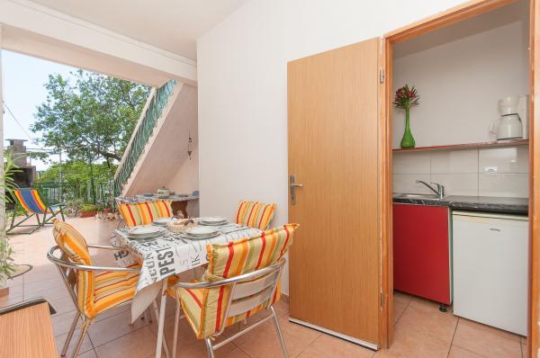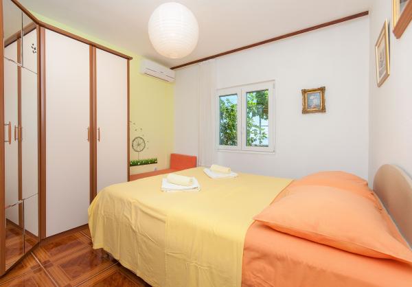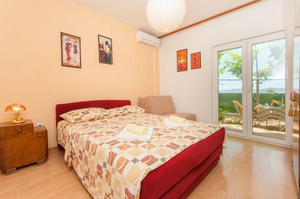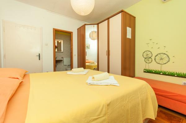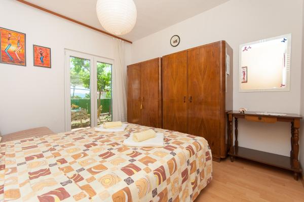 Apartmány se nachází v malé, klidné obci, ideální pro rodinnou dovolenou a nezapomenutelné vzpomínky. Apartmány se nachází na jižní straně domu a mají výhled na moře. Vzdálenost od moře a pláže je 200 m. První Byt 4 2 se skládá z WC, kuchyň a dvě ložnice, obě jsou vybaveny klimatizací. V kuchyni je umístěn v přední části domu, takže nemusíte vytápět oblast, ve které žijete. Ostatní byt 2 1 sestává z jedné místnosti s klimatizací, WC a kuchyně, která je rovněž umístěn v přední části domu. Na jižní straně domu je velká zahrada pod révy, která tvoří přírodní odstín, s možností grilování. Bezplatné parkování je k dispozici na místě. Vchod je společný. Pokoje jsou umístěny na jižní straně domu, WC pro bytu 4 2 se nachází na druhé straně místnosti na chodbě. Wi-Fi je k dispozici v celém objektu.