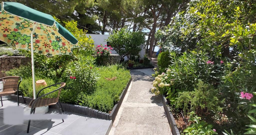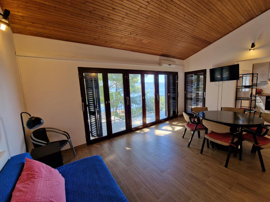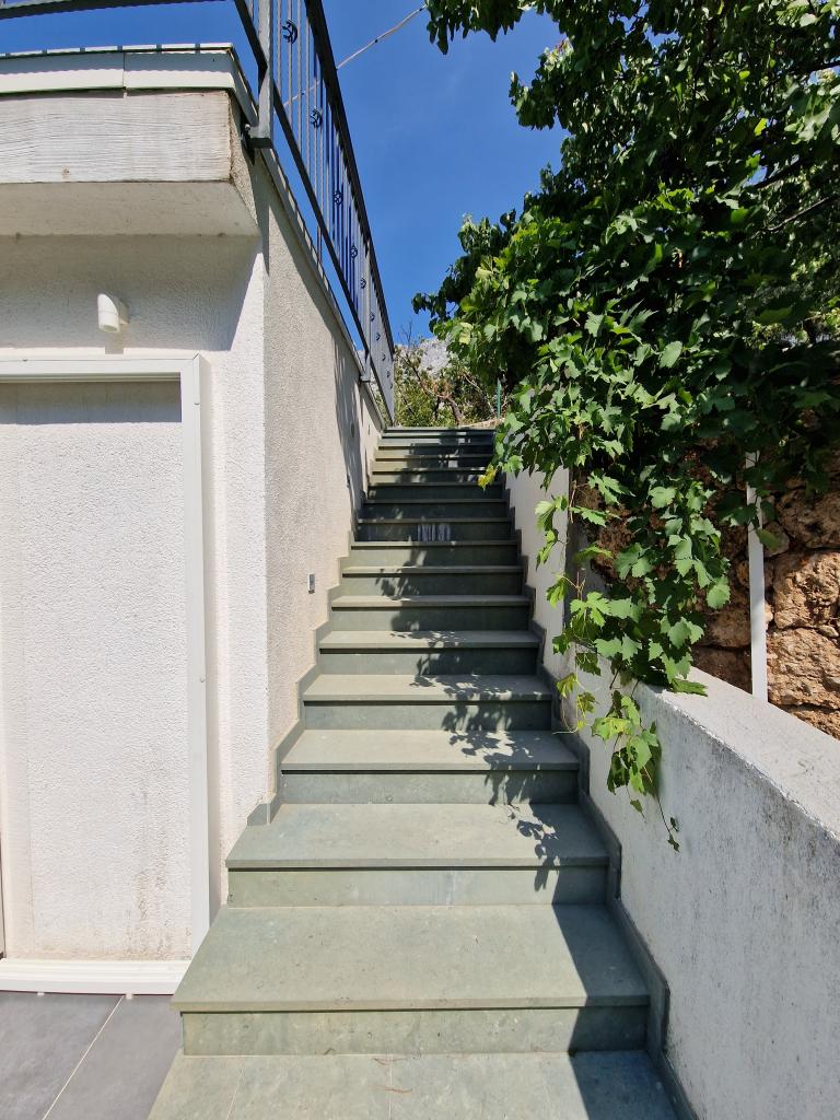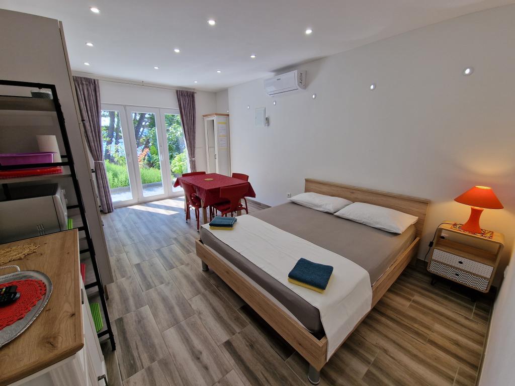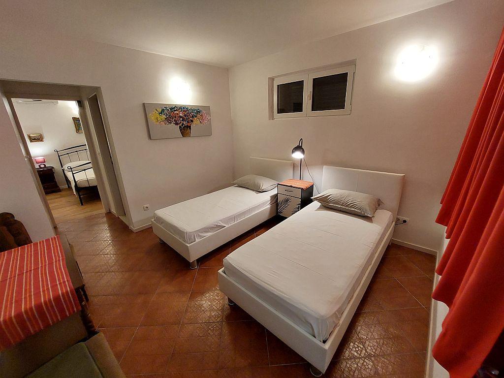 Pouze 50 m od krásné oblázkové pláže, první řada u moře. A1- (51640) Apartmán může ubytovat 6 osob. Lůžka jsou uspořádána ve 3 ložnicích o rozloze 56 m2. Terasa o rozloze 18 m2. Výhled na moře z lesa o rozloze 350 m2. Dvě koupelny. Gril je společný. V kuchyni je myčka nádobí. A2- (51641) Apartmán může ubytovat 5 osob. Lůžka jsou uspořádána ve 2 ložnicích a v jídelně o rozloze 73 m2. Balkon o rozloze 17 m2 s výhledem na moře. Gril je společný. V apartmánu je pračka a myčka nádobí. A3- (64424) Apartmán má 2 lůžka v obývacím pokoji s kuchyní a 2 v ložnici. Obývací pokoj s kuchyní má rozlohu 22 m2, ložnice 7 m2, koupelna 5 m2. V kuchyni je myčka nádobí. Gril je společný. Velká terasa (35 m2) s výhledem na moře.