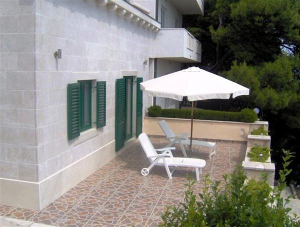 V areálu se nachází nábřeží, s výhledem na balkon ostrova Brač. Velmi klidné a tiché oblasti, daleko od silnice. Soukromá písečná pláž s kotviště lodí. V blízkosti obchodů, pošt a bankomatů kolem 1 km. Parkovací místo. Vila je nově postavený, který se nachází 10 minut jízdy od Omiše, v ústí řeky Cetiny a bohatý obsah na řece velmi zajímavé město.