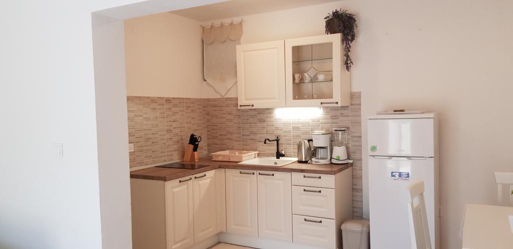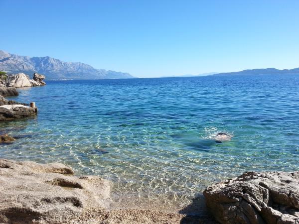 Dům se nachází v Mimice za Omiše. K dispozici jsou tři apartmány, jeden v přízemí a dva v patře. Plně vybavená. V přízemí má zahradu, a nahoru na balkon. 30m od pláže. Ideální pro domácí, bez hluku, oáza klidu a míru. Doporučení pro rodiny s dětmi a páry, kteří potřebují klid. Pro mladé lidi, kteří mají potřebné vybavení (diskotéky, noční klub atd. ...), které lze najít v nedalekých městech Omiš, 10 min jízdy a Makarska je 20 minut, a pak se vrátit do klidu. Na zahradě je gril, stoly a lavičky ve stínu, ideální pro relaxaci a socializaci. Všechny apartmány mají TV, Internet, TV, plně vybavená, koupelna, jídelna, obývací pokoj, ložnici a balkon nebo terasu. Dvě klimatizační zařízení v každém apartmánu.