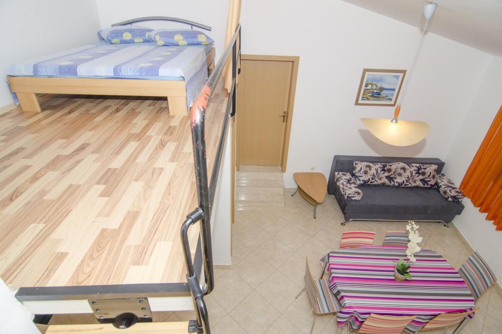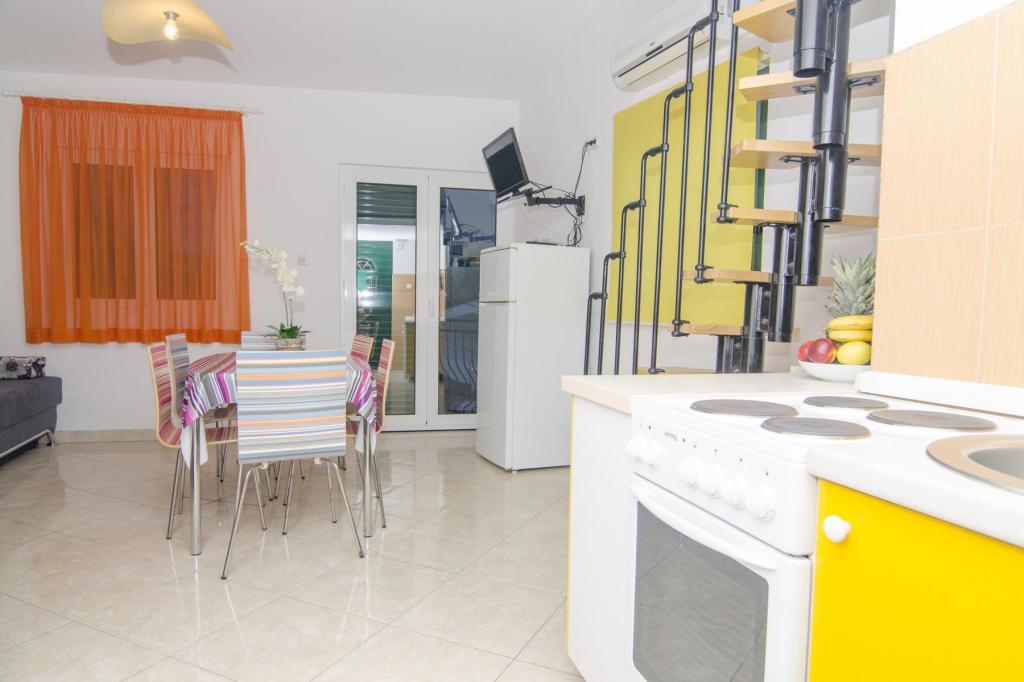 Krásná lokalita 30 m od moře. Apartmány jsou obklopeny borovým lesem a uvnitř budovy jsou společné terasy s grilem, které mohou hosté využívat. Každý apartmán má vlastní balkon s výhledem na moře. Plně vybavené, klimatizace, internet, parkování ve vlastní garáži.