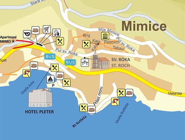 Pobytová taxa je v ceně.V blízkosti bytu je kavárna-pizzerie, pošta a tržnice (1 minutu chůze). Pláž (5-10 min chůze). Parkování a wi-fi zdarma Dům se nachází v klidnější části města s prostorným dvorem. Další zařízení a aktivity: rafting na řece Cetina, lanové dráhy, turistické stezky, cyklistika, potápění, organizované výlety lodí, Skywalk Biokovo... Mimice se nachází nedaleko Omiše, Makarské a Splitu, což je ideální pro poznávání památek. V ceně je zahrnut welcome drink. Pro všechny další informace nás neváhejte kontaktovat. VÍTEJTE! Mirko s rodinou :-)