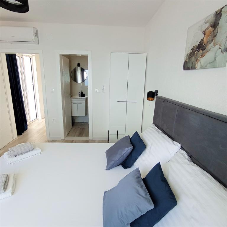 A4 superior - nový, moderní apartmán ve 2. patře domu s krásným výhledem na moře, ostrovy a město. Kapacita 2+2. Plně vybavené a klimatizované v každém pokoji. A4+2 superior - nový, moderní byt ve 2. patře. Dvě ložnice, dvě koupelny, kuchyň, jídelna, obývací pokoj a velká terasa s výhledem na moře a ostrovy. Klimatizace v každém pokoji. A4+4 - velký a prostorný byt v 1. patře domu. Plně vybavené a klimatizované v každém pokoji. Skládá se ze dvou velkých ložnic (s koupelnami), obývacího pokoje, kuchyně, jídelny, tří koupelen, terasy a balkonu s nádherným výhledem na moře a ostrovy. A4+1 - byt v přízemí. Skládá se ze dvou prostorných ložnic, koupelny a kuchyně s jídelnou. Z velké terasy, která je v přírodním stínu, je výhled na moře a ostrovy. A2+2 - byt v přízemí, s terasou. Skládá se z ložnice, koupelny, haly, kuchyně a jídelny s postelí. Klimatizované. Výhled na moře.