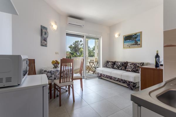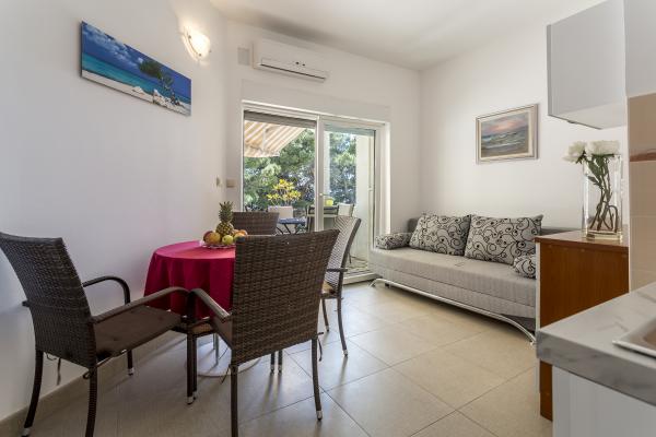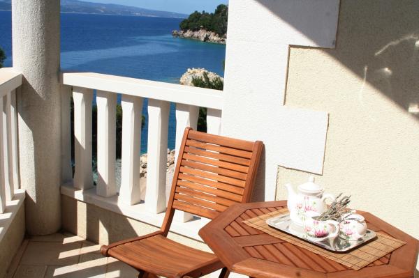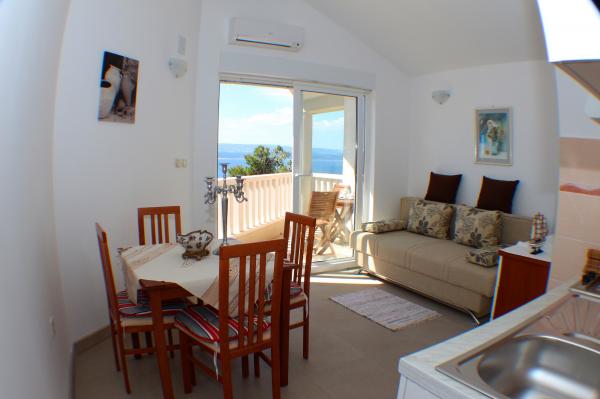 Moderní, nové byty v malé malebné vesničce Medici se nachází 10 km od Omiše a 25 km od Makarské. Jsou umístěny přímo u moře, krásné oblázkové pláže. Místo je rájem na zemi, kde si můžete odpočinout od městského shonu a vychutnat si křišťálově čisté vody. Ideální pro rodinnou dovolenou. Kromě blízkosti moře, co dává zvláštní kouzlo borovic, které obklopují dům. Pokud si chcete vychutnat vůni borovic, poslouchat zvuky vln a moře ze svého balkonu, více Apartmány jsou ideálním místem pro vás! Chcete-li určitý obsah, v nedalekém městečku Omiš je možné zorganizovat rafting na řece Cetině, volné lezení, potápění, plachtění, volejbal, tenis a výlety lodí. Budova má tři jednotky. Všechny tři apartmány jsou stejné velikosti a uspořádání nábytku, se v přízemí apartmán má terasu s výhledem na moře, a další dva mají balkon s výhledem na moře.