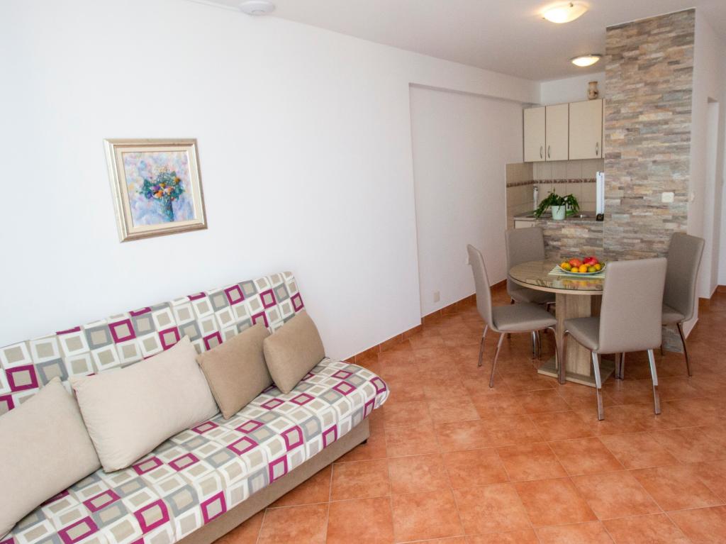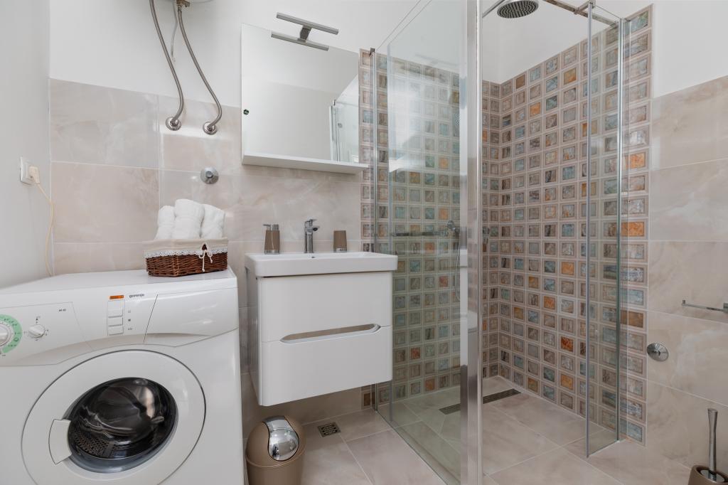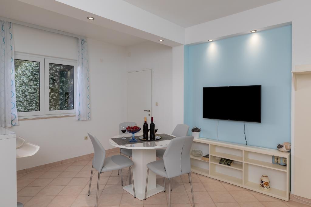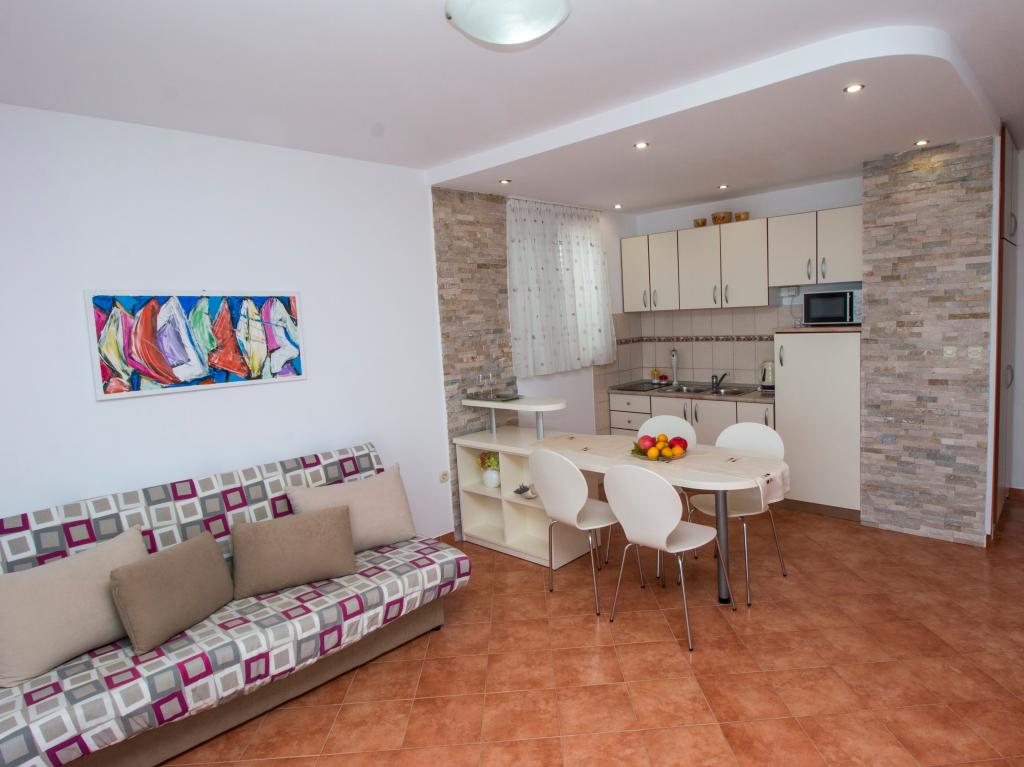 Apartmán 2+2 - ID: 73216 je vybaven vyhřívanou vířivkou pro 5 osob. Použití hydromasážní vany je zahrnuto v ceně noci.