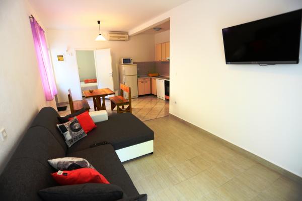 Apartmány jsou moderně vybavené, mají vše, co potřebujete k příjemnému pobytu. Každý apartmán má samostatný vchod. Dvůr je velký, takže je vhodný pro venkovní posezení a grilování. Pláž je vzdálená 50 metrů. Má speciální venkovní sanitární jednotku vedle grilu a pračku, kterou mohou používat všichni hosté apartmánu. Centrum a veškerá důležitá občanská vybavenost je cca 200 metrů od apartmánu.
