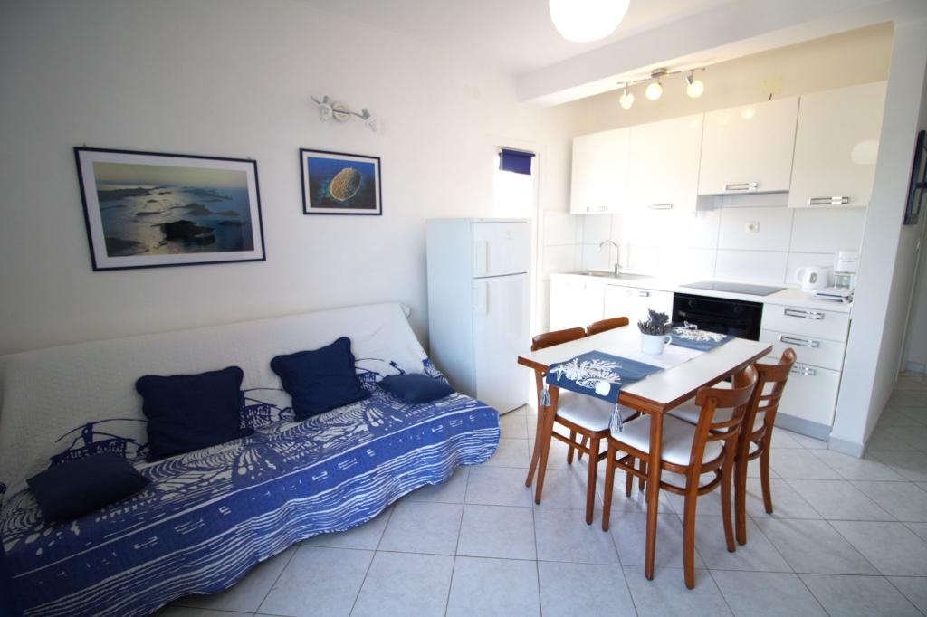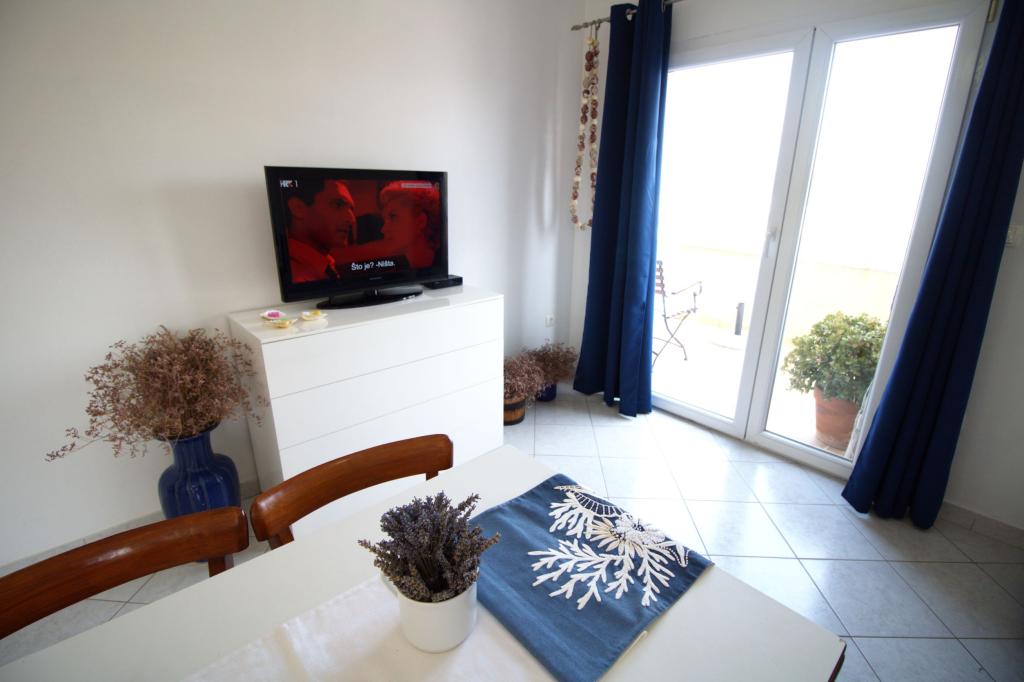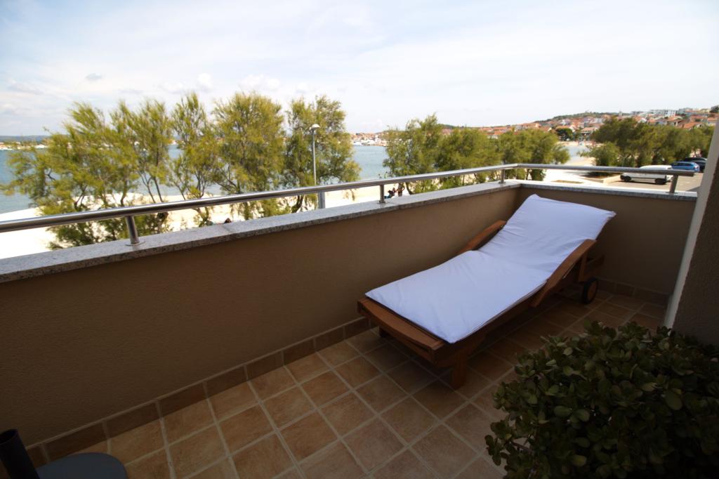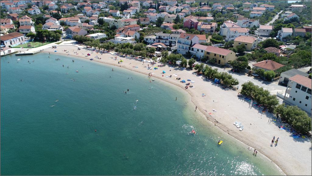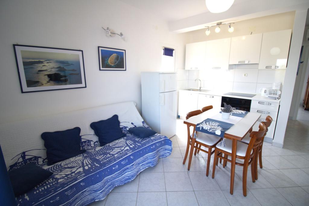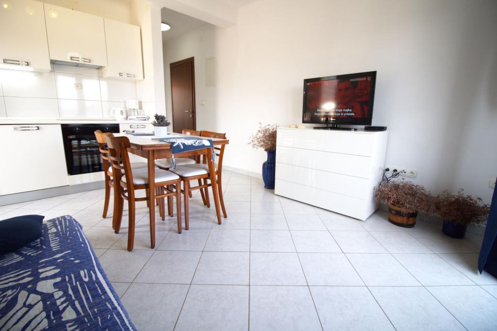 Nově zrekonstruovaný a plně zařízený apartmán, první řada k moři. Byt se skládá z jedné ložnice, kde mohou spát dva dospělí. Byt má obývací pokoj s gaučem, který lze využít jako přistýlku. Parkování je zdarma ve dvoře před bytem. Z bytu je výhled na moře a celou zátoku Murter. Nachází se ve výborné lokalitě, je max. 10 minut snadné chůze od písečné pláže Podvrška a pouhých 70 metrů od místní pláže Luka (kombinace betonové, oblázkové a písečné pláže. První obchod (Konzum) je od apartmánu vzdálen pouhých 100 metrů. Byt je vzdálen 10 - minutu snadné chůze od centra Murteru.