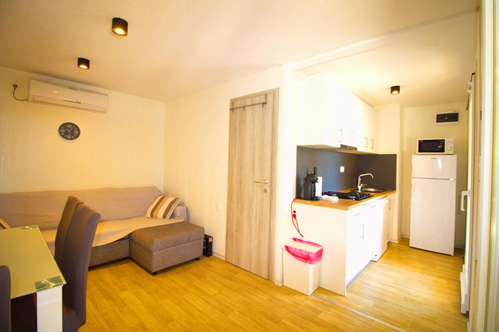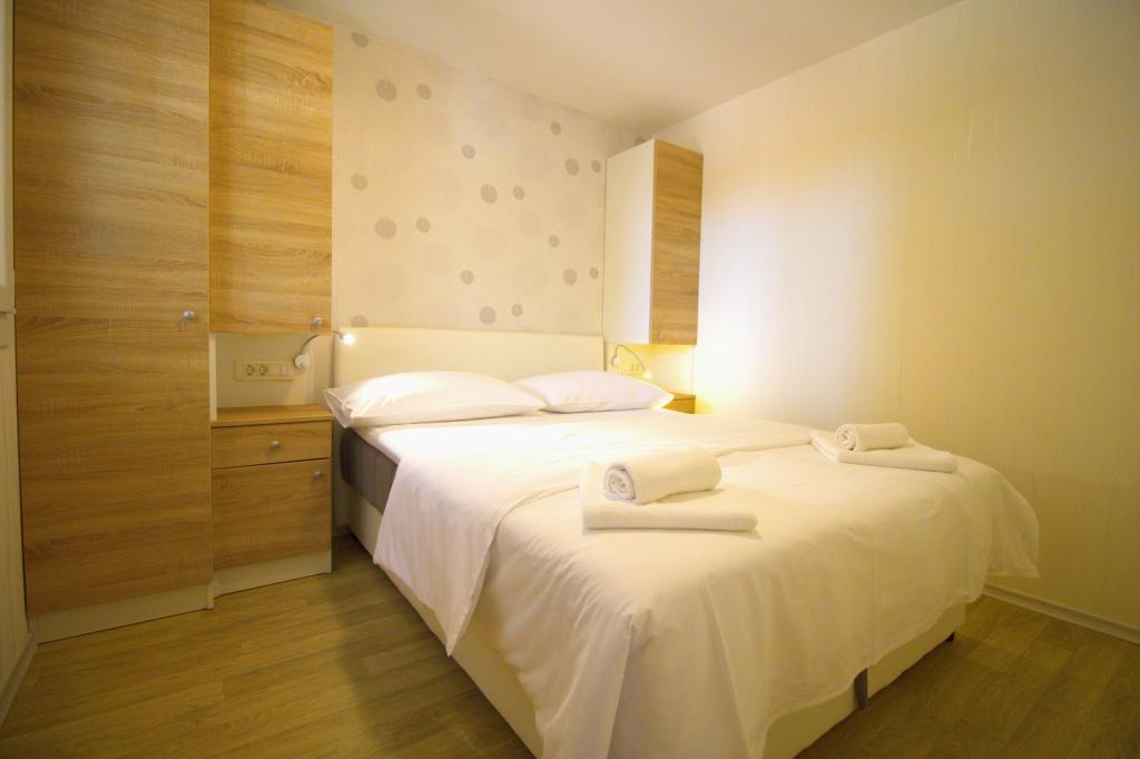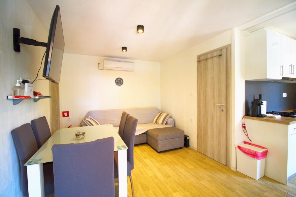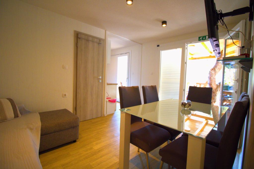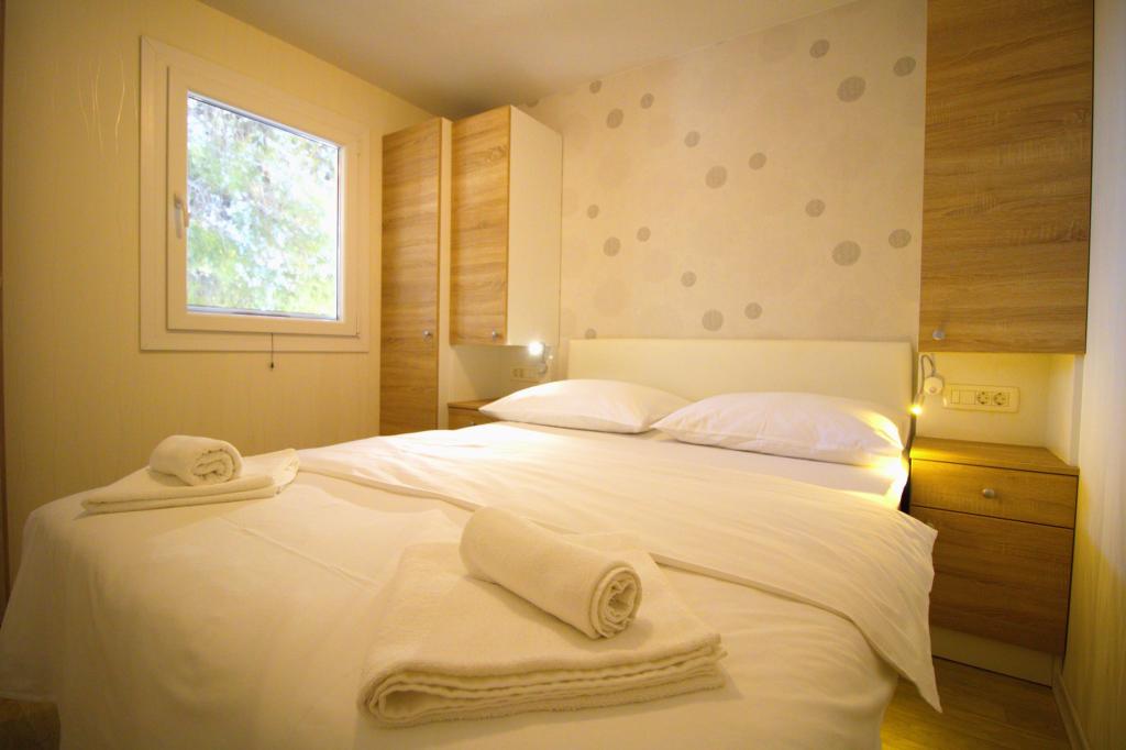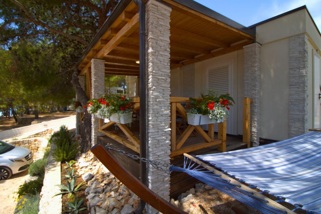 Mobilní dům se dvěma ložnicemi se nachází v blízkosti písečné pláže Slanica, je jen 50 metrů od moře. Mobilhome je vybaven kuchyňskou linkou, lednicí, myčkou, WiFi internetem. V ložnicích mohou spát 4 dospělí, v obývacím pokoji je pohovka, kterou lze využít jako přistýlku na spaní. V přední části bytu je krásná terasa s výhledem na moře v přírodním stínu. Parkování pro jedno auto je zajištěno před domem a je zdarma.