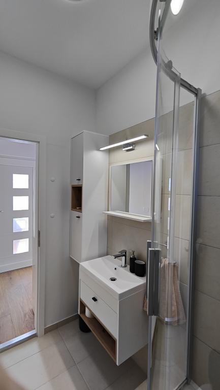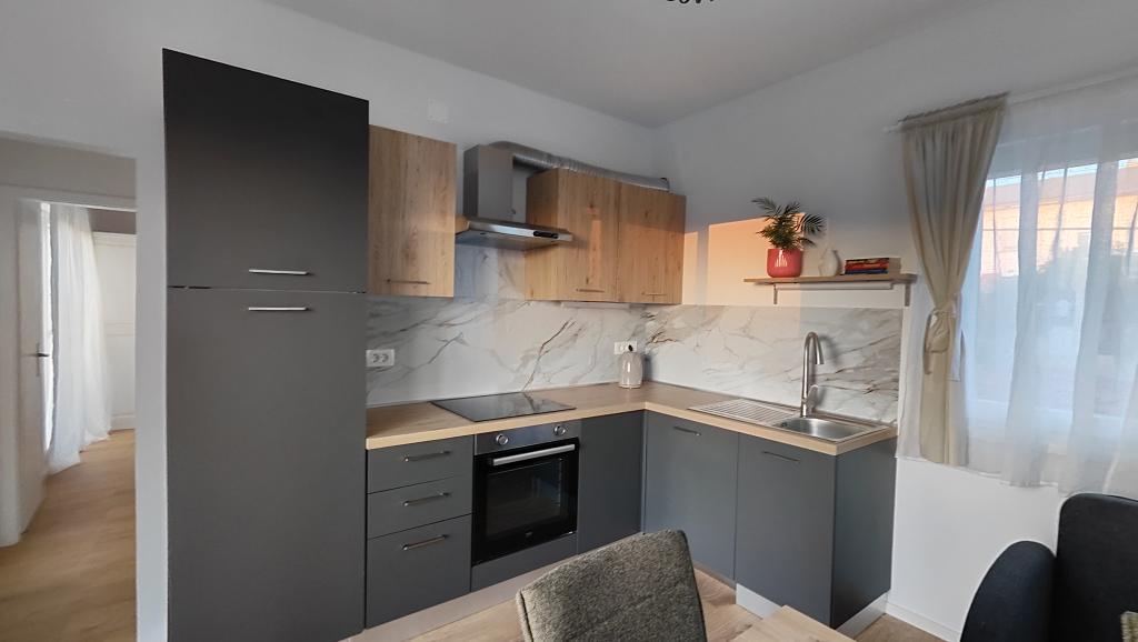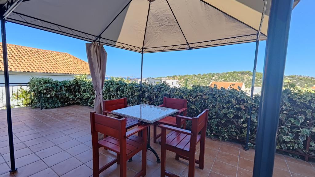 Kompletně zrekonstruovaný apartmán v soukromém prostředí s velkou terasou a výhledem na moře, 300 m od písečné pláže Slanica. Hosté mají k dispozici gril a prostor pro posezení na dvoře, stejně jako zabezpečené parkovací místo. Apartmán má velkou samostatnou ložnici. Kuchyň je plně vybavená kávovarem, myčkou nádobí, velkou lednicí s mrazákem a k dispozici je i pračka.