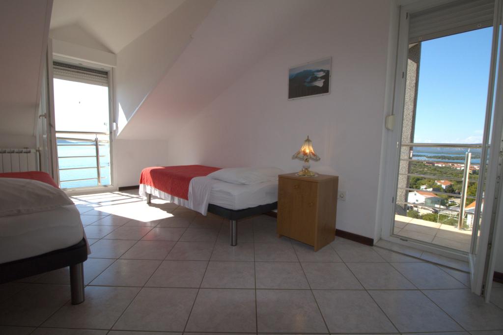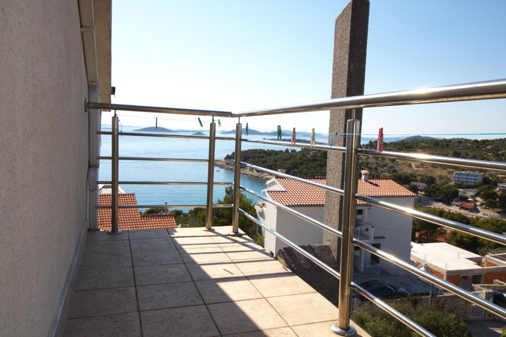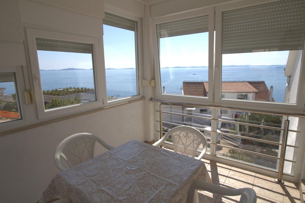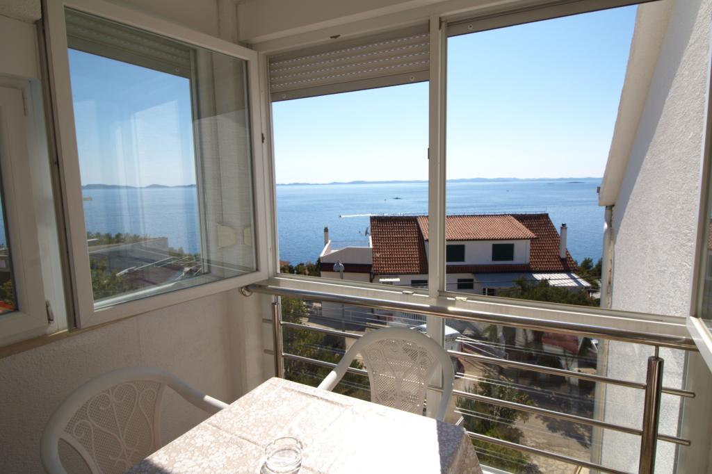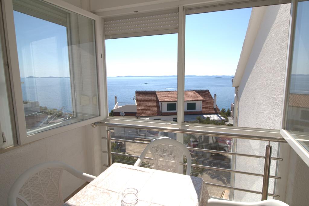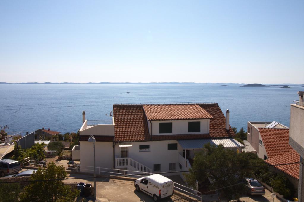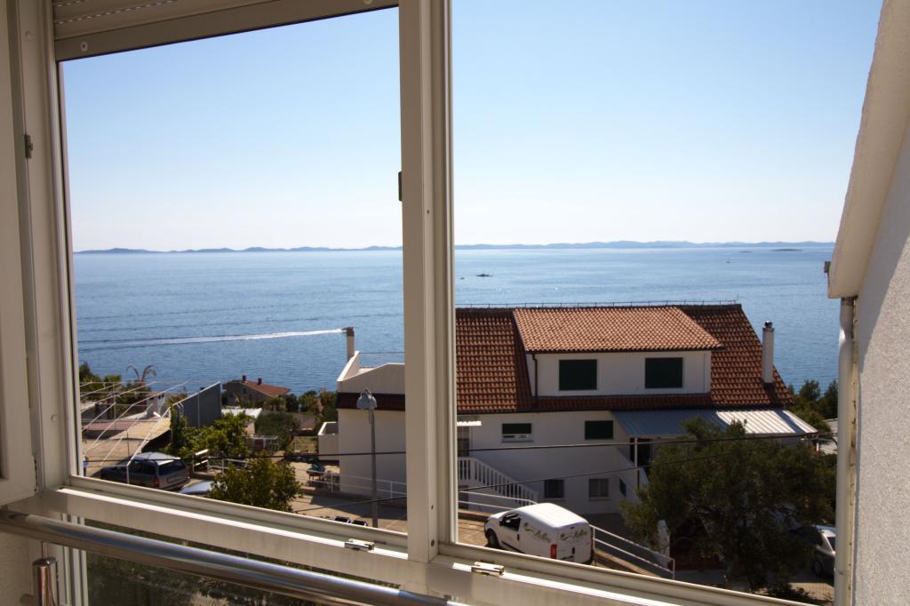Apartmán s krásným výhledem na moře se nachází ve výborné lokalitě pouhých 300 metrů od moře. Byt má rozlohu 75 m2. Má dvě ložnice, kde se může ubytovat 5 dospělých. Má obývací pokoj. Má přistýlku pro jednu osobu. Má koupelnu se sprchovým koutem. Plocha balkonu/terasy je 12 m2. Byt se nachází ve druhém patře domu. Byt je vybaven TV, satelitem, troubou. Parkování je zajištěno a zahrnuto v ceně. K dispozici je venkovní gril, který lze použít. Byt je asi 1000 m od centra města a 300 m od moře nebo první pláže v Murteru. Byt má krásný výhled na moře, písečnou zátoku Slanica a ostrovy Kornati.