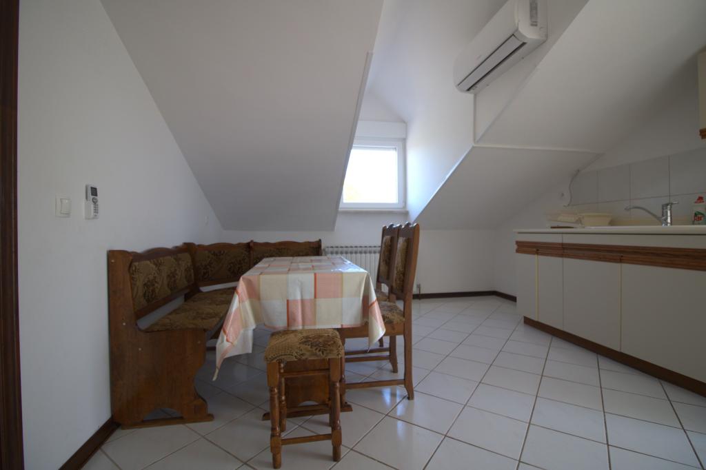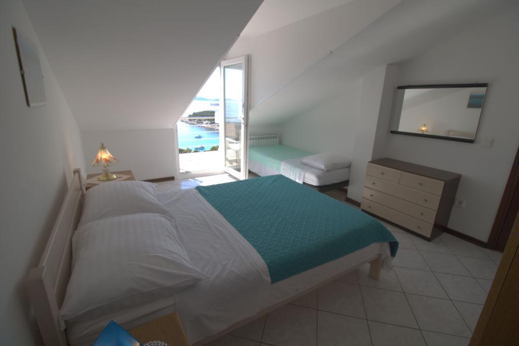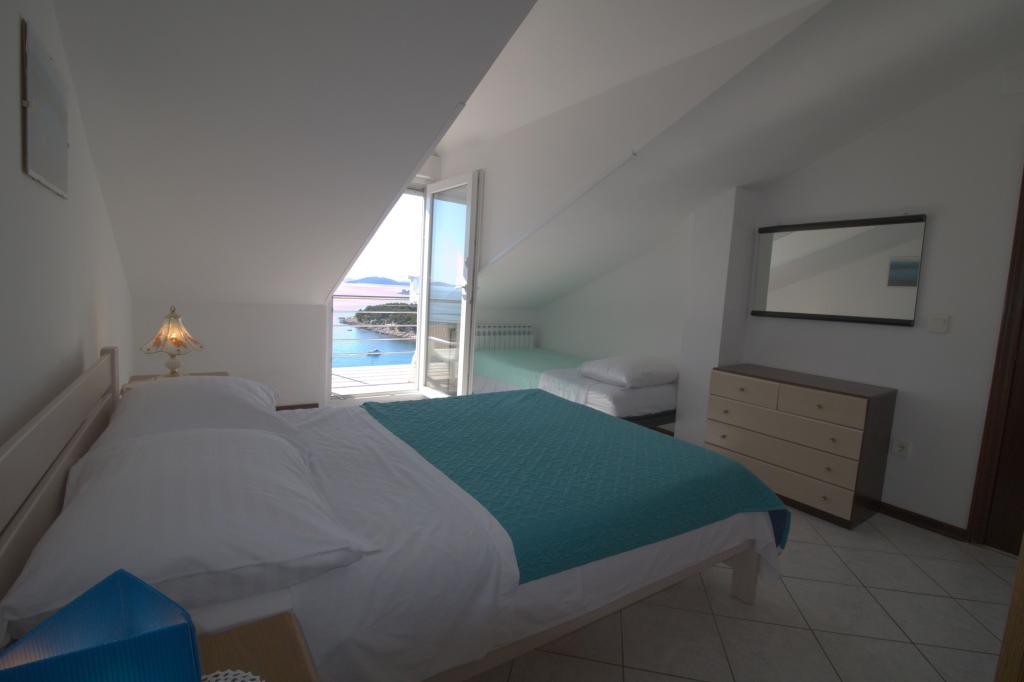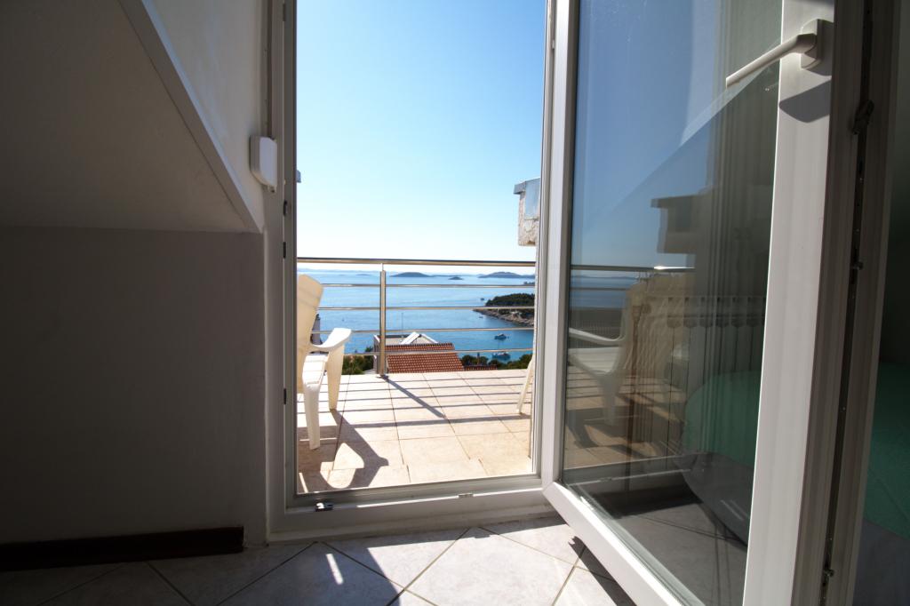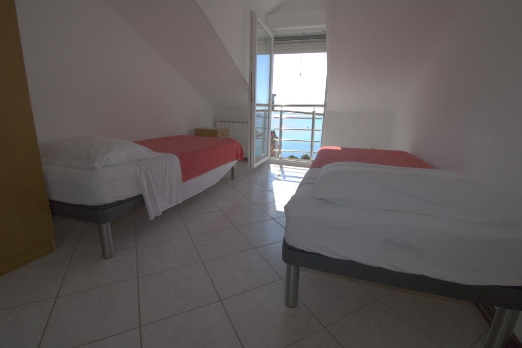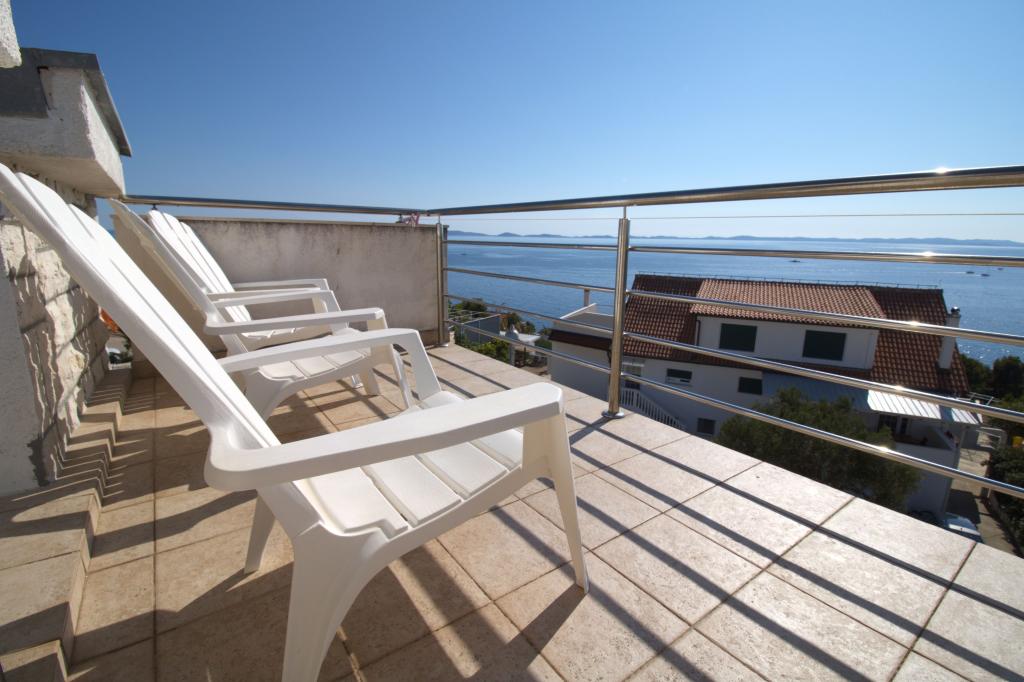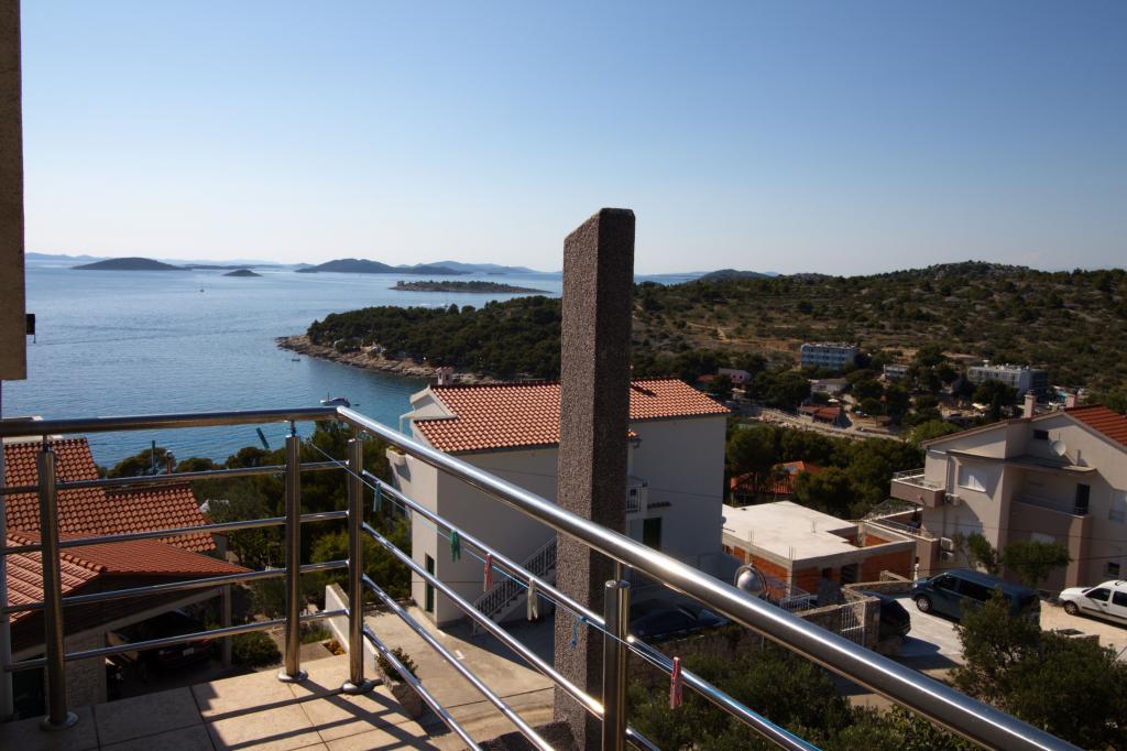 Apartmán s krásným výhledem na moře se nachází ve výborné lokalitě pouhých 300 metrů od moře. Byt má rozlohu 75 m2. Má dvě ložnice, kde se může ubytovat 5 dospělých. Má obývací pokoj. Má přistýlku pro jednu osobu. Má koupelnu se sprchovým koutem. Plocha balkonu/terasy je 12 m2. Byt se nachází ve druhém patře domu. Byt je vybaven TV, satelitem, troubou. Parkování je zajištěno a zahrnuto v ceně. K dispozici je venkovní gril, který lze použít. Byt je asi 1000 m od centra města a 300 m od moře nebo první pláže v Murteru. Byt má krásný výhled na moře, písečnou zátoku Slanica a ostrovy Kornati.
