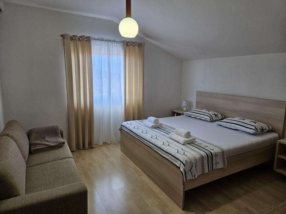 Moderně zařízený apartmán se nachází 600 metrů od písečné pláže Slanica, jedné z nejkrásnějších pláží v oblasti. Apartmán má 100 m2, 3 ložnice, 2 koupelny, kuchyň s jídelním stolem, velkou terasu, klimatizaci v každém pokoji, wi-fi, TV, satelitní TV, myčku nádobí, gril, zabezpečené parkování pro 2 auta, zahradu a altánek pro relaxaci. Cena zahrnuje ložní prádlo, ručníky, závěrečný úklid a turistickou daň.