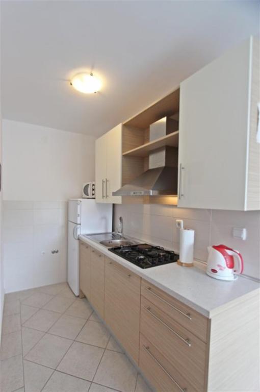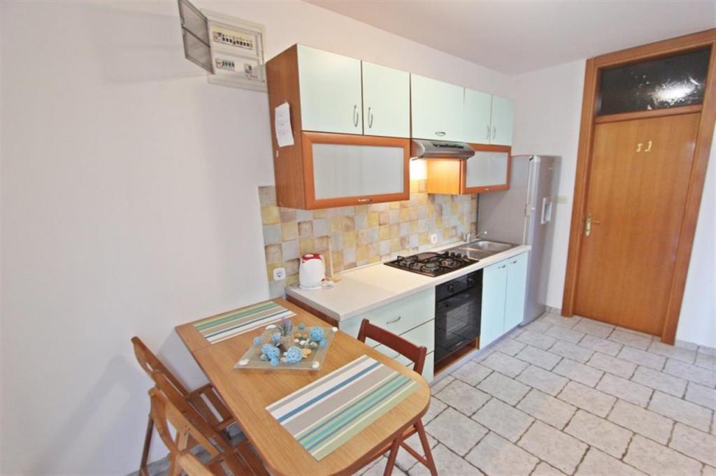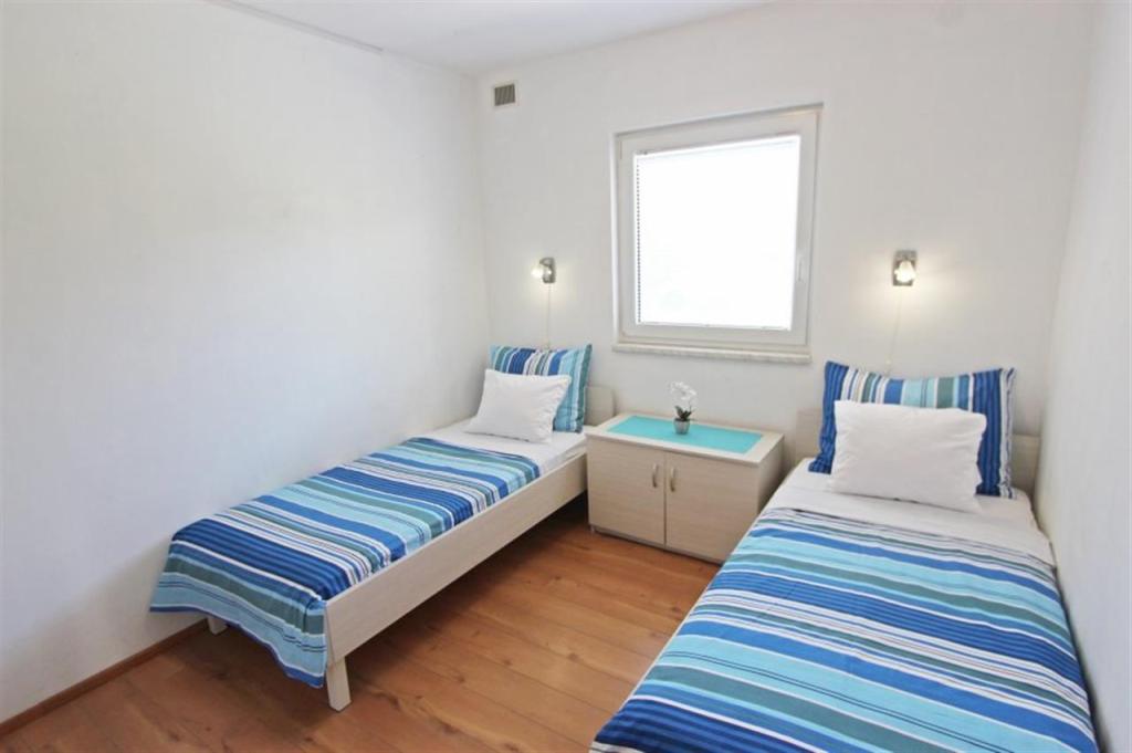 Apartmány pro čtyři osoby 2 + 2 nebo studio apartmány 2 + 1. Skládají se z ložnice (jedna manželská postel) a pokoje se dvěma samostatnými lůžky (rozměry 200x90) nebo ložnice a lůžka v obývacím pokoji, zatímco studiové apartmány se skládají z manželské postele s přistýlkou, kuchyně, koupelny a velké terasy. (15m2 / 18m2). V přízemí je také místnost s pračkou, kterou mohou hosté využívat. Apartmány jsou vybaveny TV a klimatizací, wi-fi, mikrovlnnou troubou a lednicí s mrazákem. Před apartmánem máme venkovní gril, který mohou hosté kdykoliv využít. Parkování je zajištěno a nachází se ve dvoře. Vzdálenost od první pláže a obchodů je 250 m, zatímco centrum je 1 km daleko