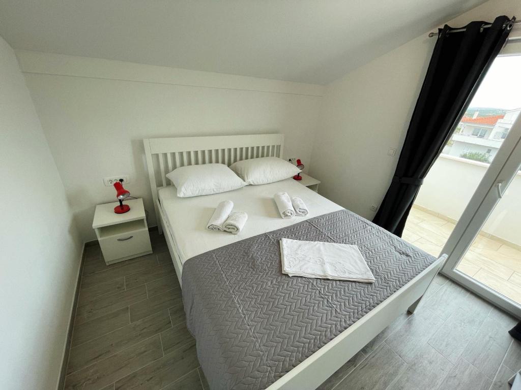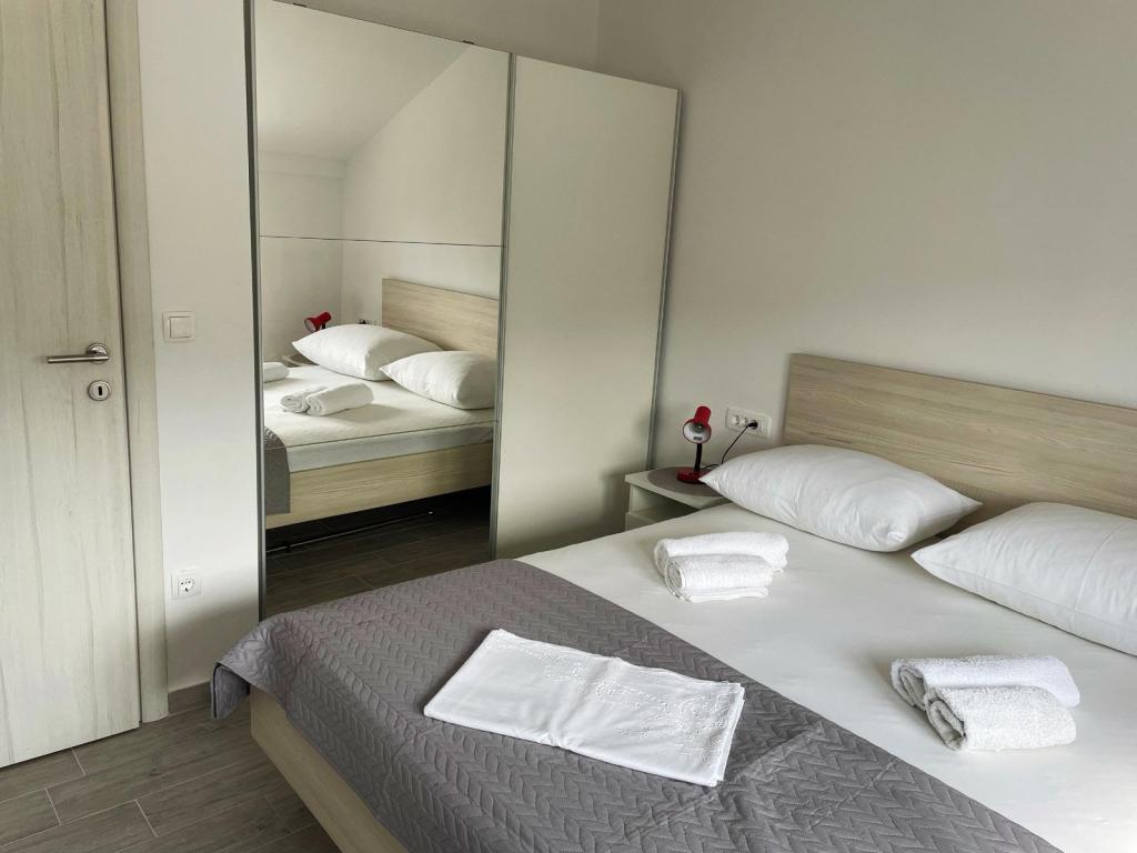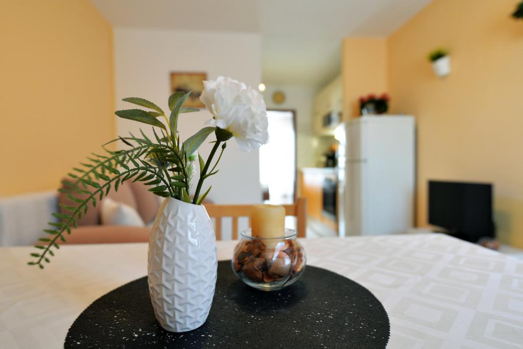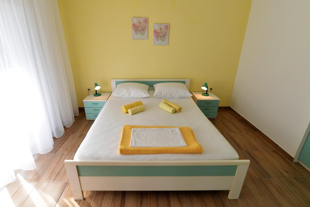 Naše apartmány se nacházejí v samém centru města. Jsou zde čtyři byty, dva jednopokojové a dva dvoupokojové. Mají krásný výhled na moře, což je velmi atraktivní pro naše hosty, z nichž někteří se stále vracejí. Na hlavní pláž je to pár minut a do centra města dojdete za 5 minut. Naši hosté jsou s naší pohostinností velmi spokojeni, máme také krásnou velkou zahradu bohatou na květiny a různou místní zeleninu. Tak přijďte k nám, nebudete litovat! Těšíme se na Vás :)