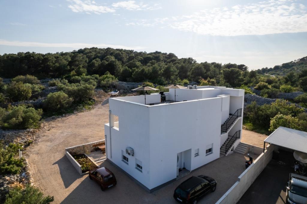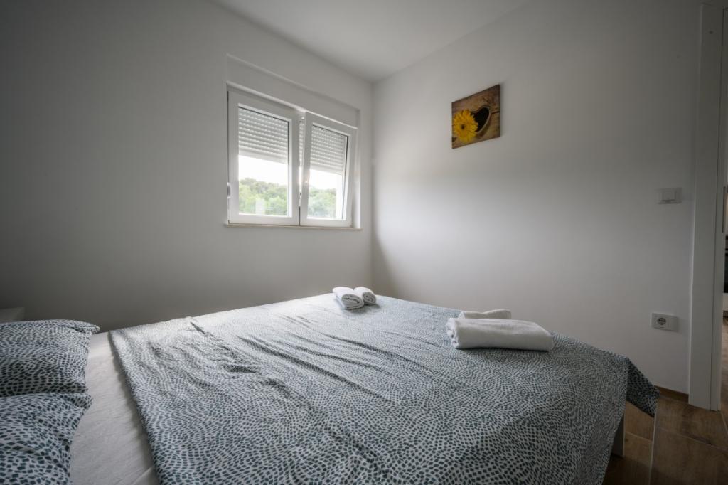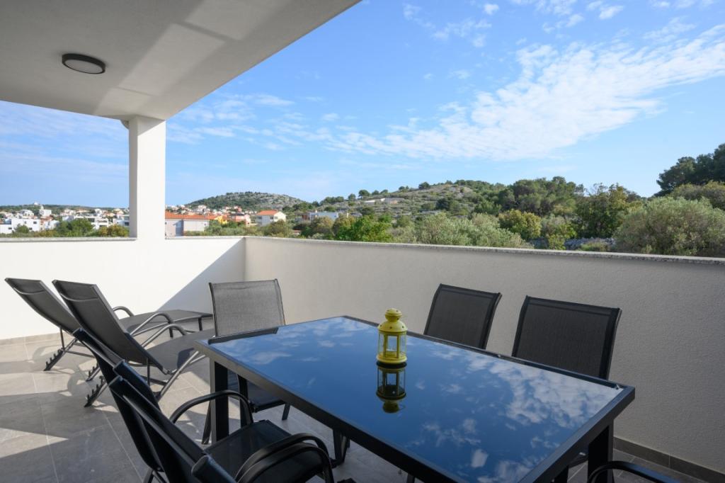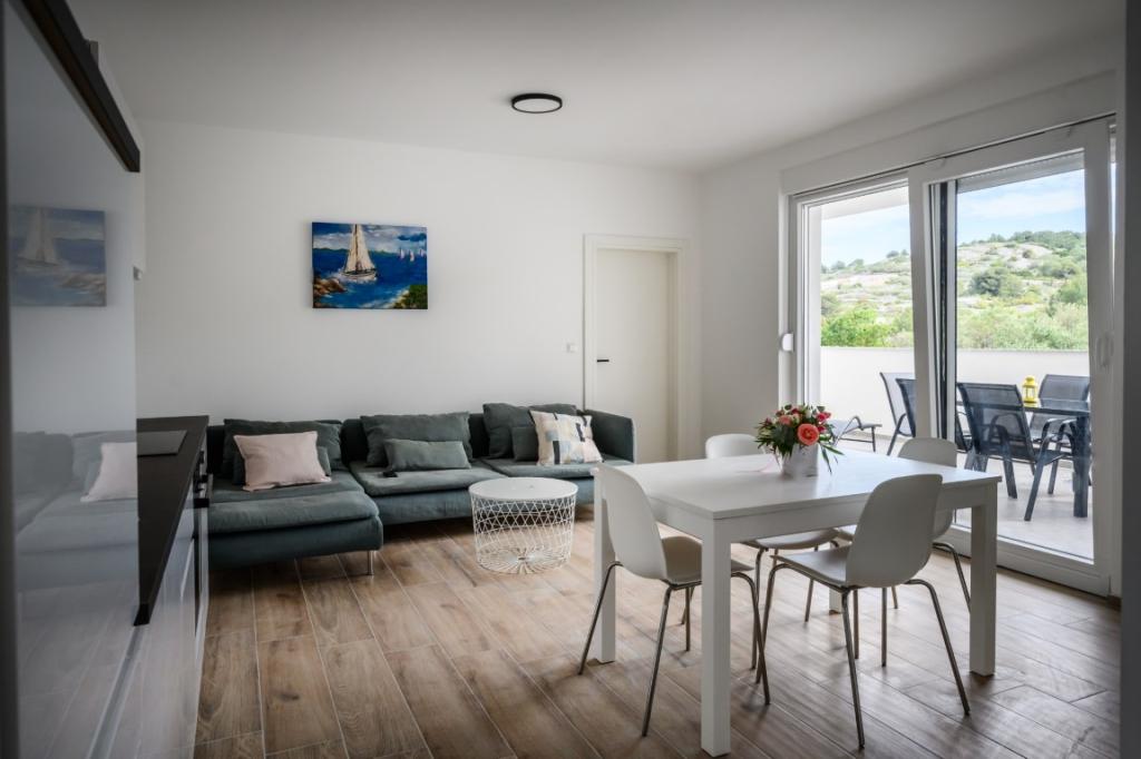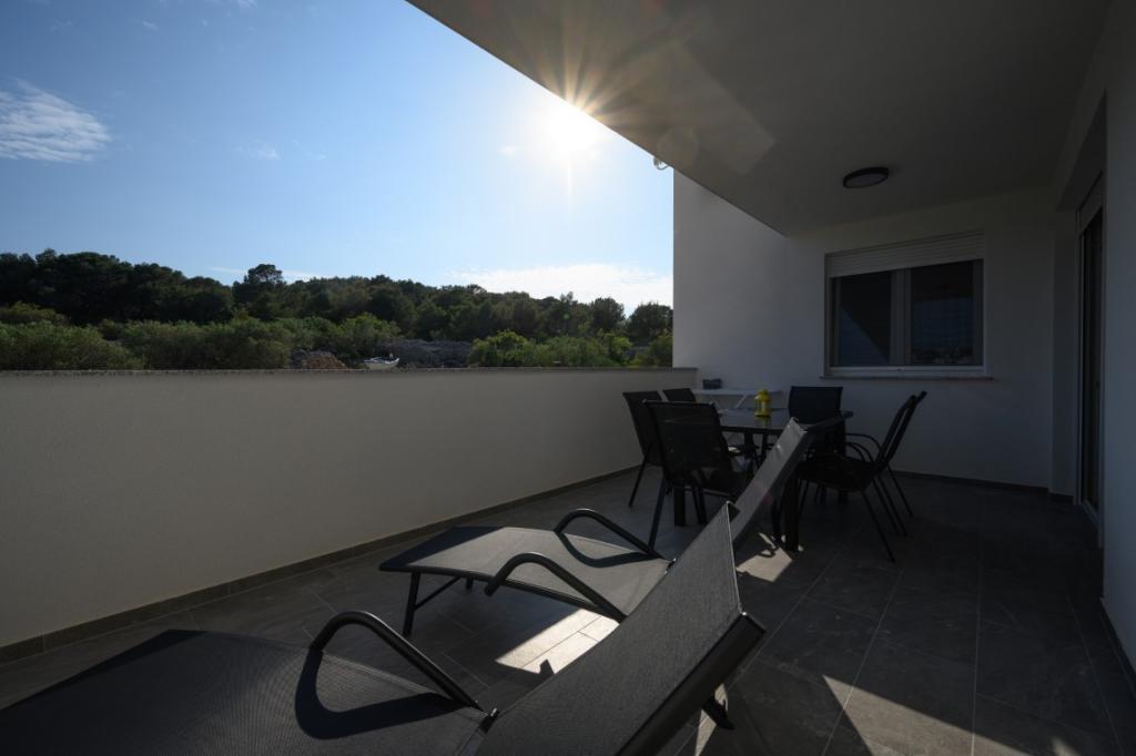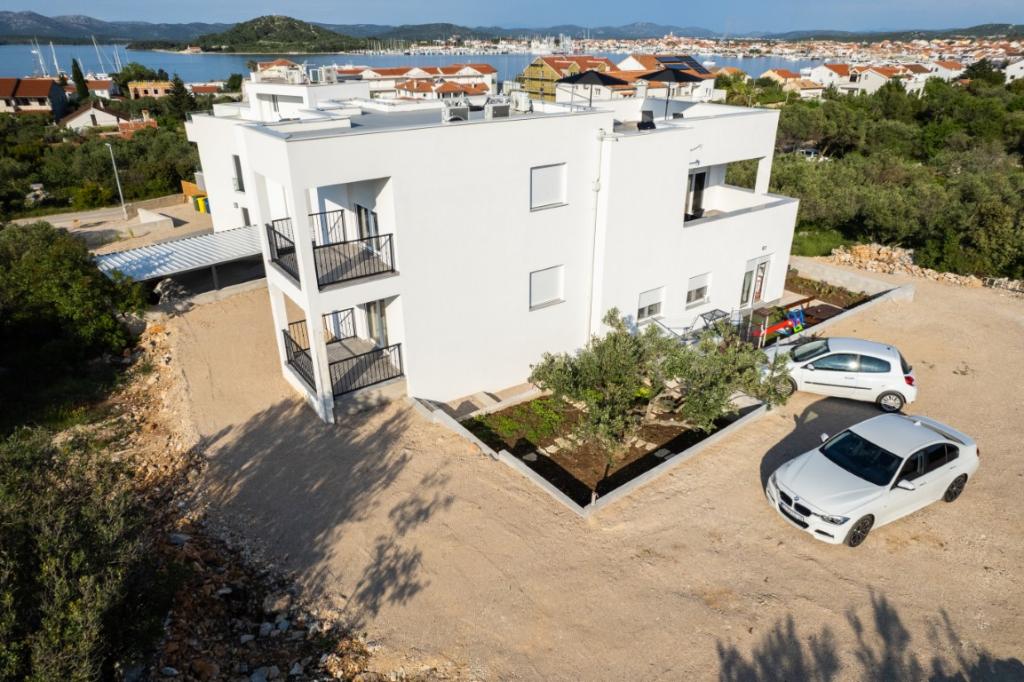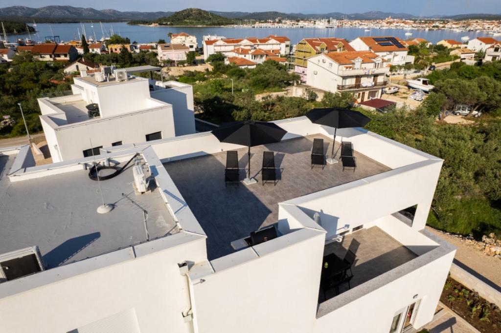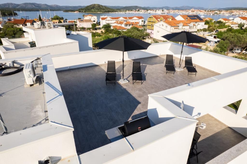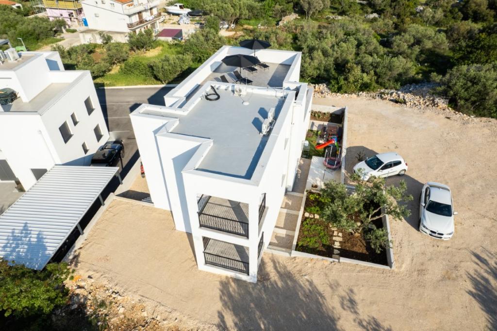 Apartmány Mate jsou moderně vybaveny moderním nábytkem a nacházejí se v klidné části Murteru nedaleko pláže Podvrške (5 minut chůze) a pláže Luke (5 minut chůze). Každý apartmán má vlastní terasu a na střeše domu je společná terasa s lehátky a plynovým grilem.