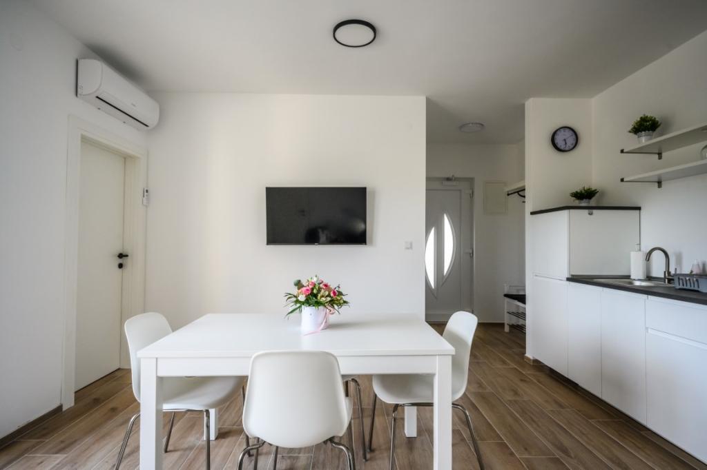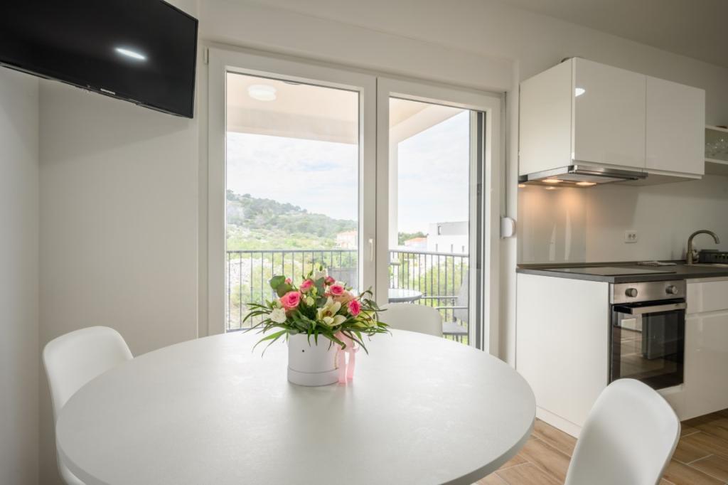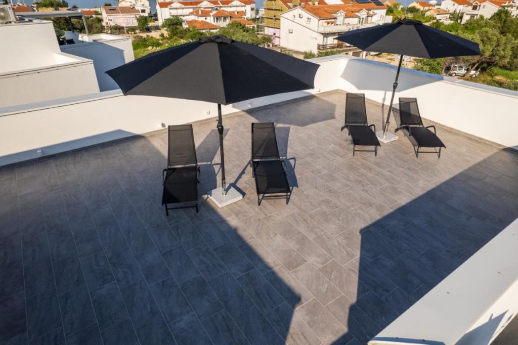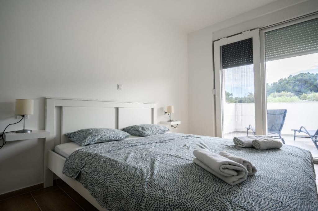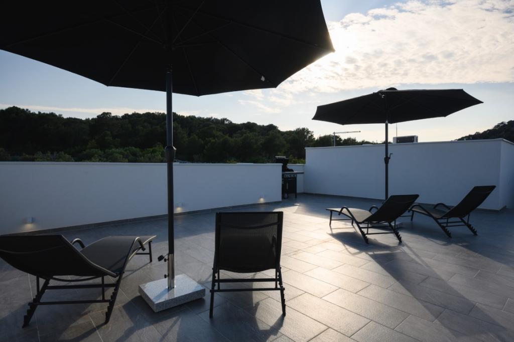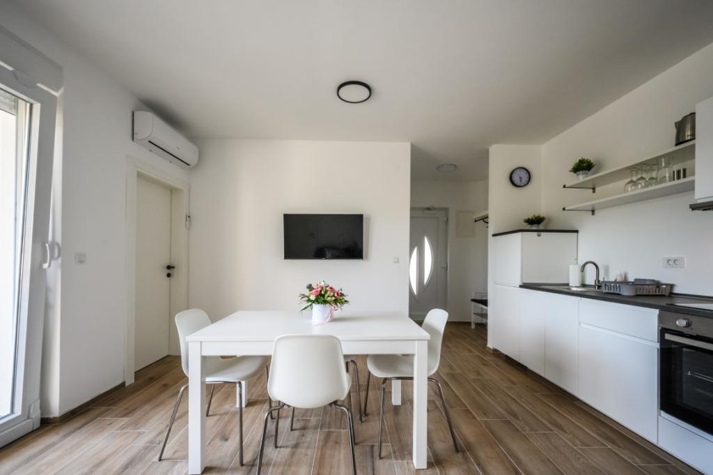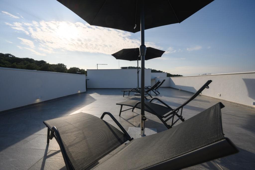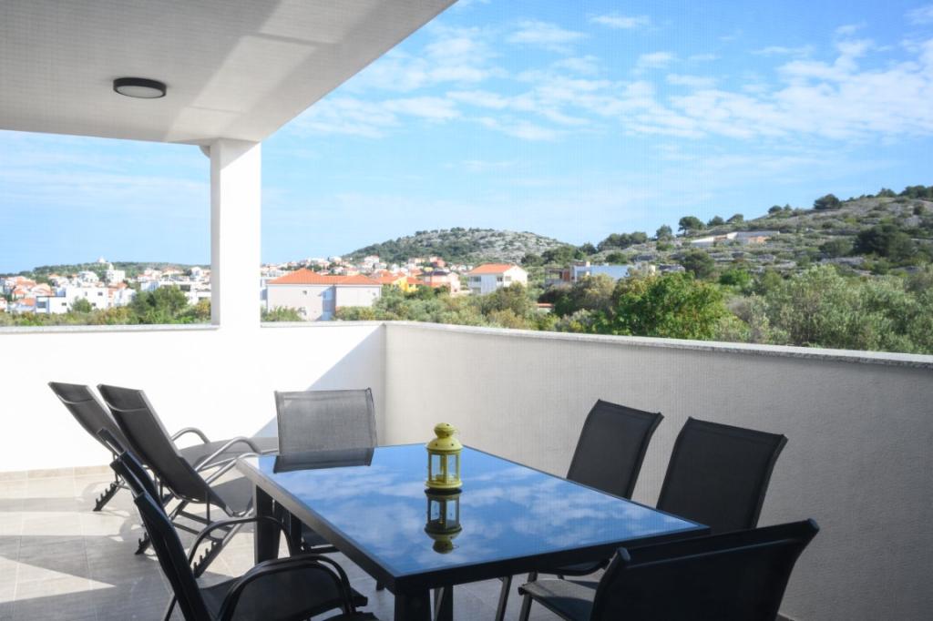 Apartmány Mate jsou moderně vybaveny moderním nábytkem a nacházejí se v klidné části Murteru nedaleko pláže Podvrške (5 minut chůze) a pláže Luke (5 minut chůze). Každý apartmán má vlastní terasu a na střeše domu je společná terasa s lehátky a plynovým grilem.