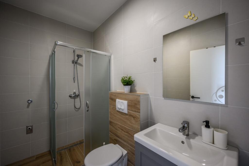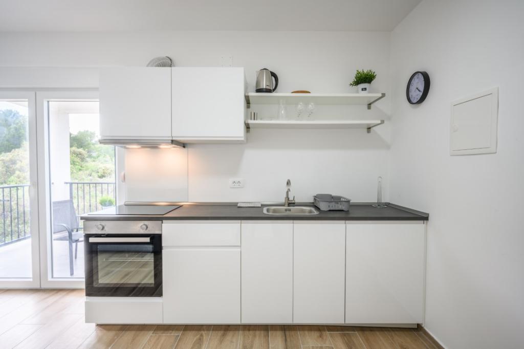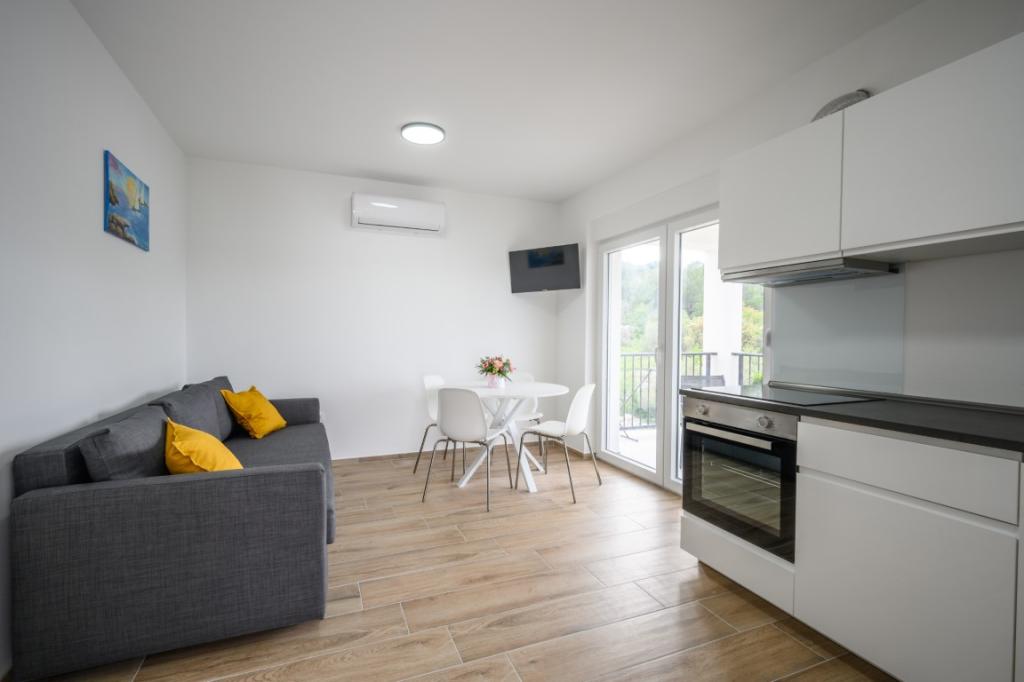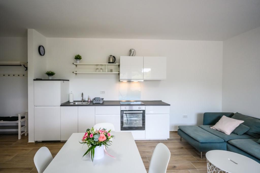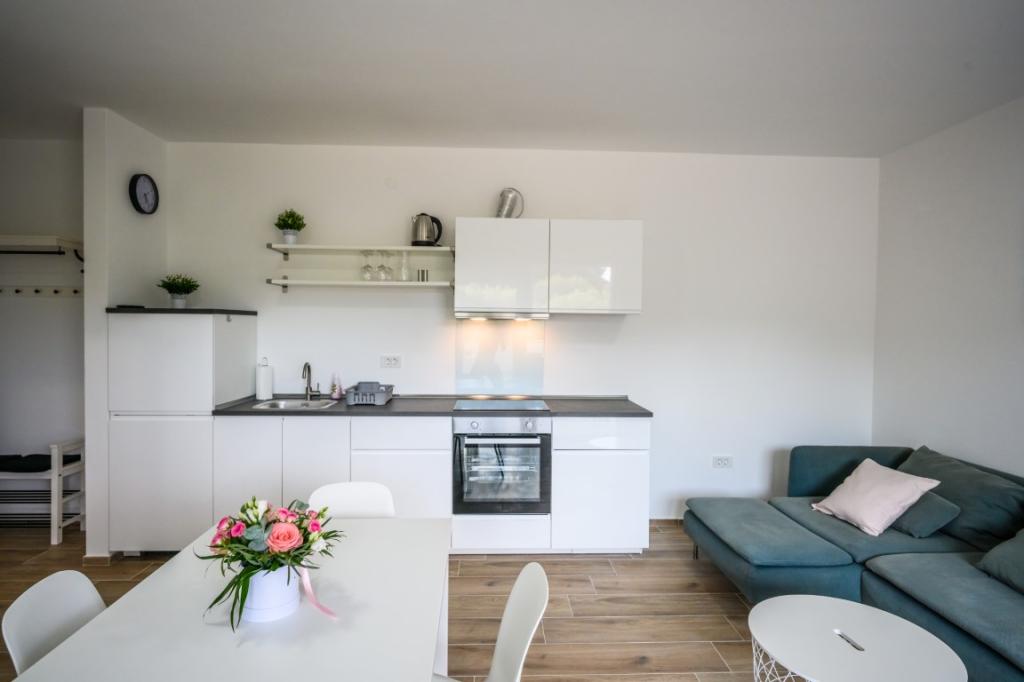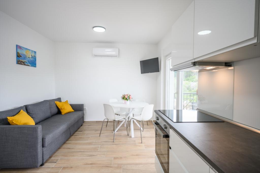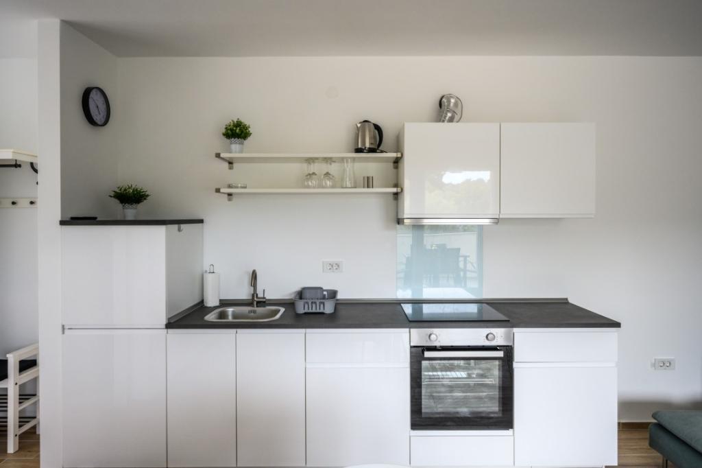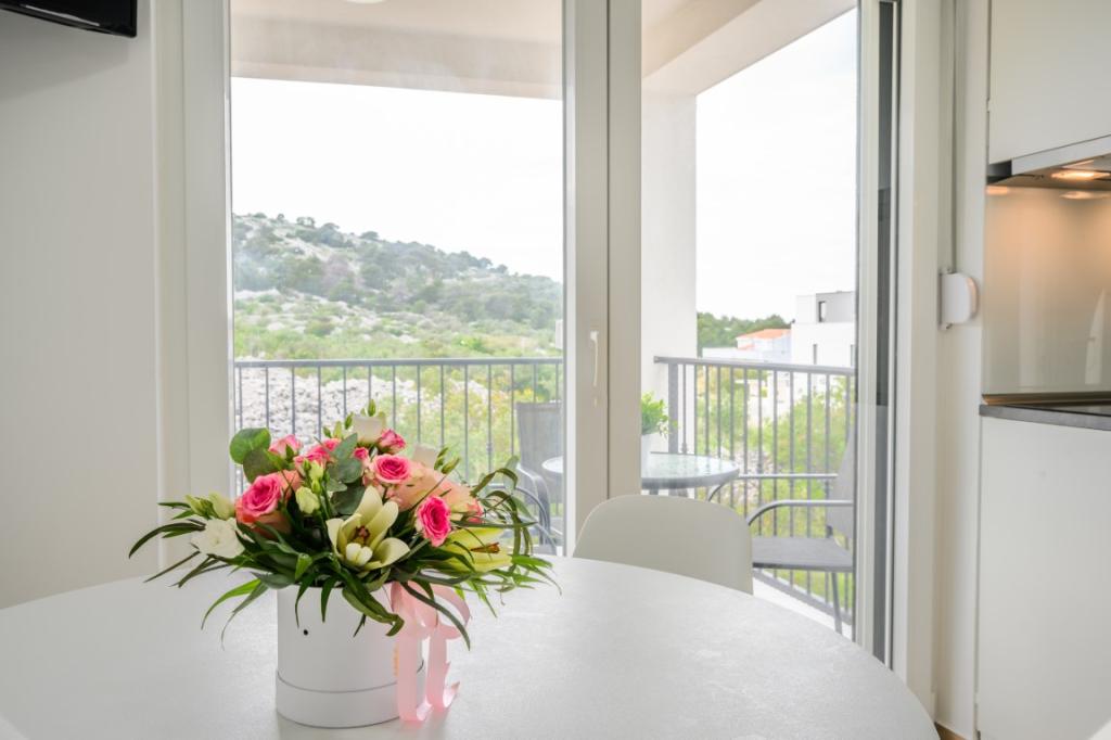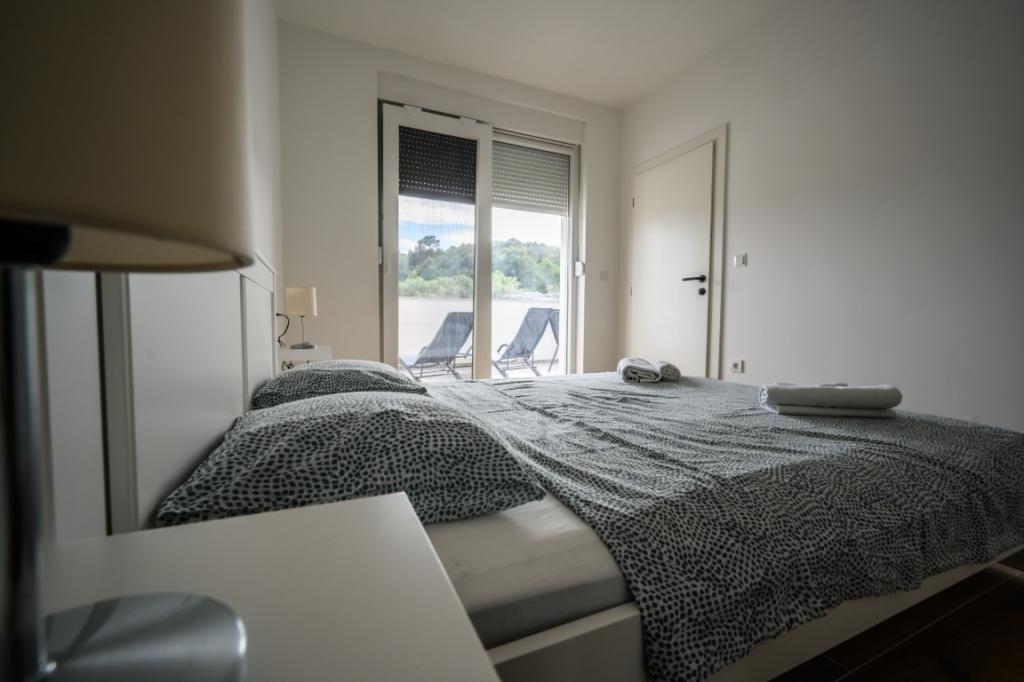 Apartmány Mate jsou moderně vybaveny moderním nábytkem a nacházejí se v klidné části Murteru nedaleko pláže Podvrške (5 minut chůze) a pláže Luke (5 minut chůze). Každý apartmán má vlastní terasu a na střeše domu je společná terasa s lehátky a plynovým grilem.