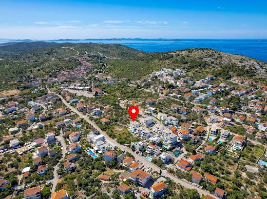 Apartmány Mon Soleil se nacházejí na klidném místě nedaleko centra a nejkrásnějších pláží na ostrově Murter. Poloha a úžasný výhled z apartmánu Mon Soleil jsou perfektní volbou pro každého, kdo hledá relaxační a klidnou dovolenou v apartmánu i na nedalekých plážích ostrova Murter.