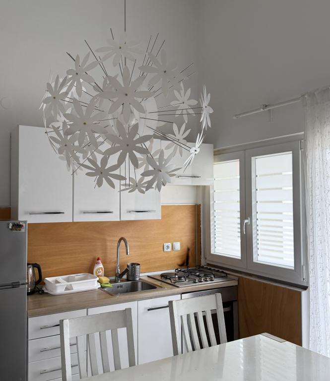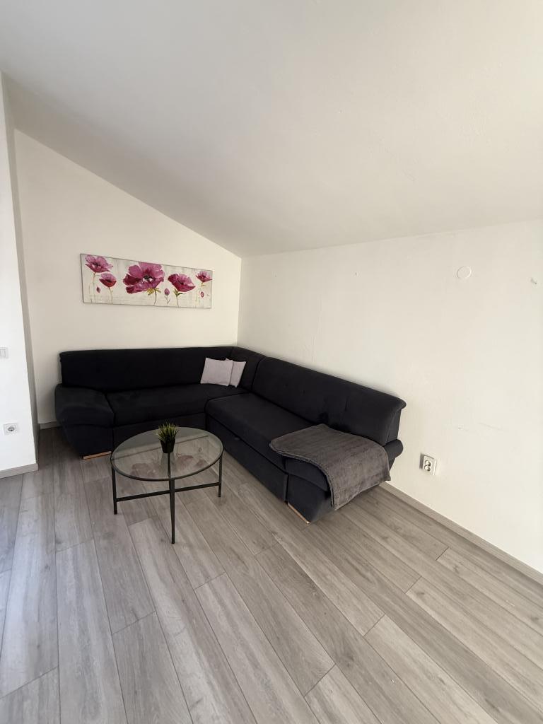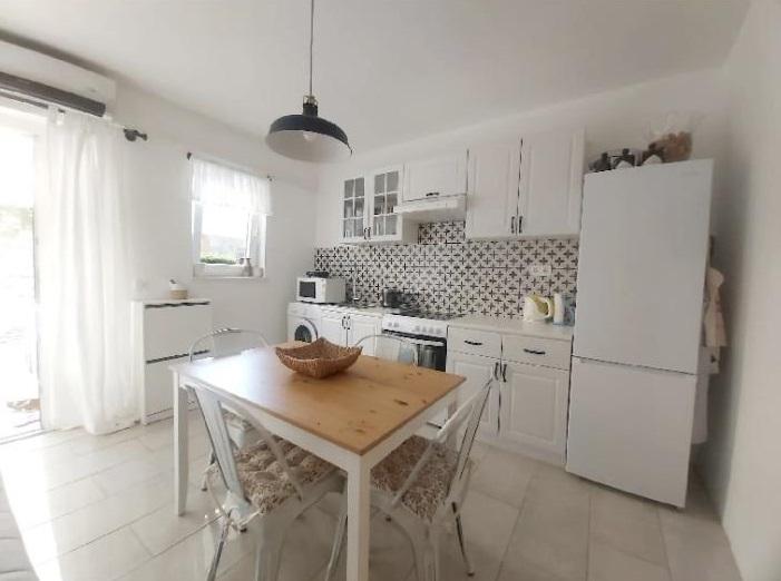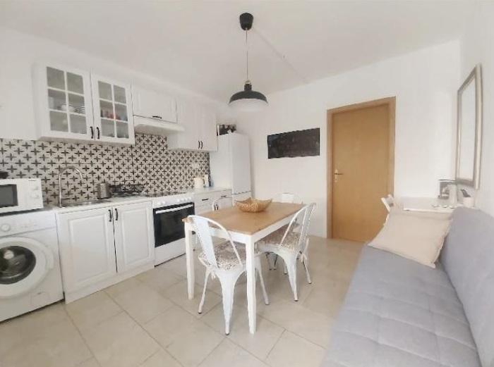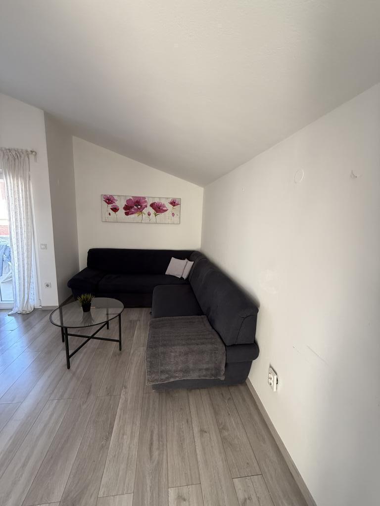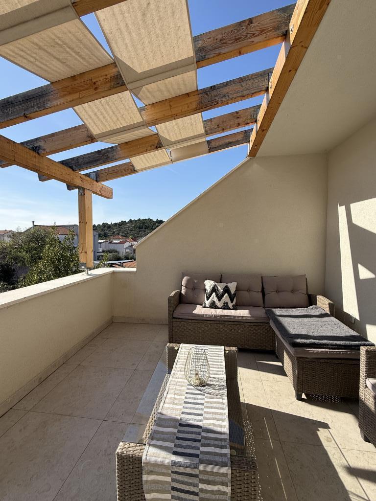 Studiový apartmán s terasou o rozloze 12 m2. Apartmán je určen pro 2 osoby. Velká manželská postel, plně vybavená kuchyň, jídelní stůl, koupelna. Terasa a jídelní stůl. Zajištěné parkovací místo před apartmánem pro jedno vozidlo. Blízko pláže. Apartmán se nachází 5 minut chůze od pláže Slanica a 7 minut chůze od centra Murteru.
