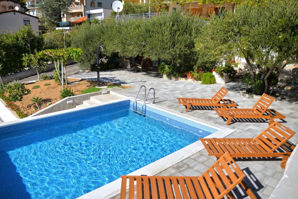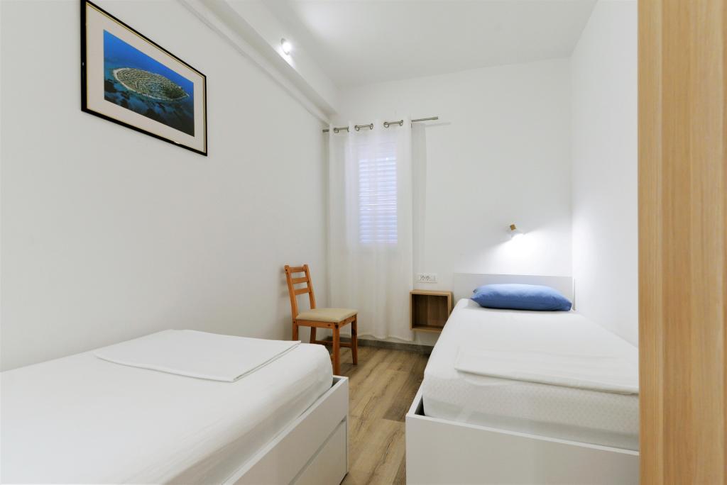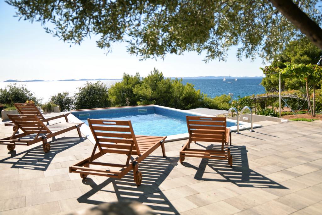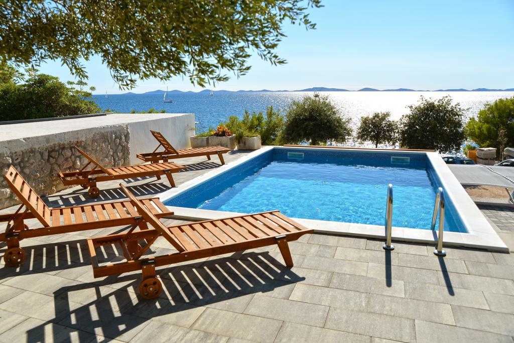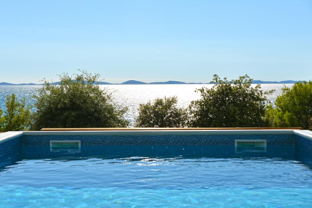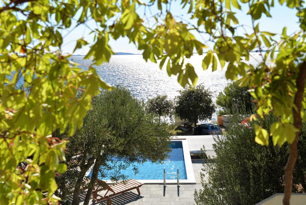 Pro perfektní dovolenou nabízíme dva apartmány s jednou / dvěma ložnicemi, kuchyní, koupelnou, obývacím pokojem a terasou s výhledem na moře a Kornati. Zařízení se nachází v klidné části ostrova Murter. Hosté mají k dispozici bazén, velký venkovní gril a parkoviště. Před domem je skalnatá a oblázková pláž a 10 minut chůze od písečné pláže Slanica a Čigrađa.