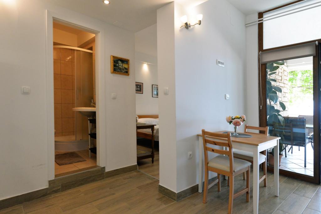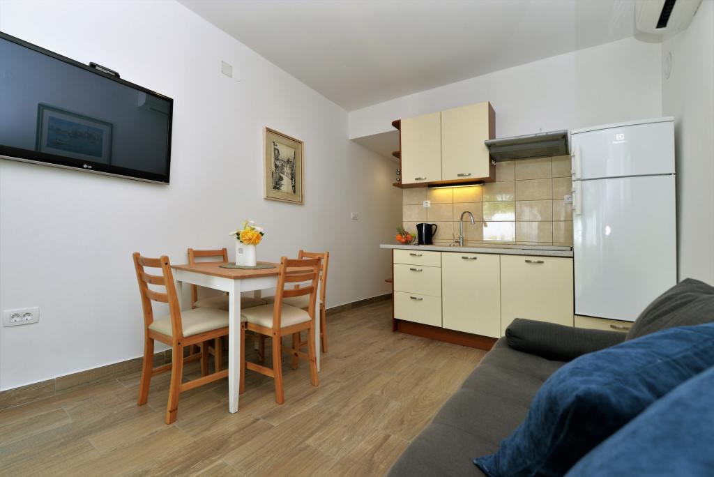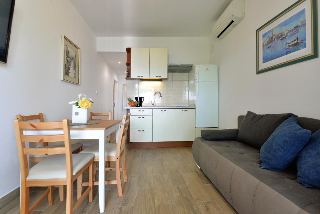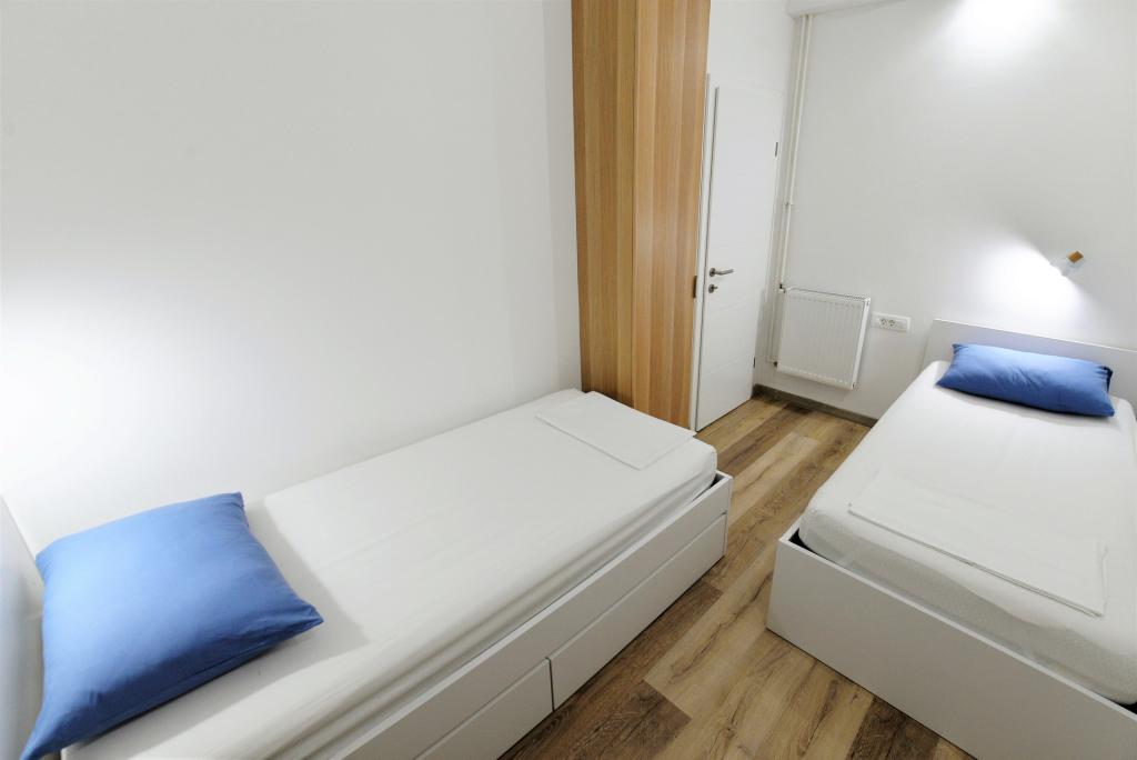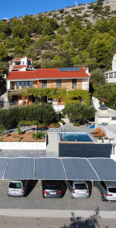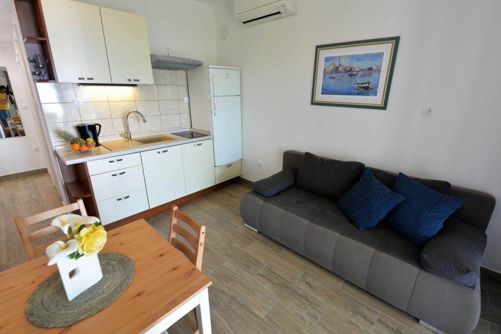 Pro perfektní dovolenou nabízíme dva apartmány s jednou / dvěma ložnicemi, kuchyní, koupelnou, obývacím pokojem a terasou s výhledem na moře a Kornati. Zařízení se nachází v klidné části ostrova Murter. Hosté mají k dispozici bazén, velký venkovní gril a parkoviště. Před domem je skalnatá a oblázková pláž a 10 minut chůze od písečné pláže Slanica a Čigrađa.