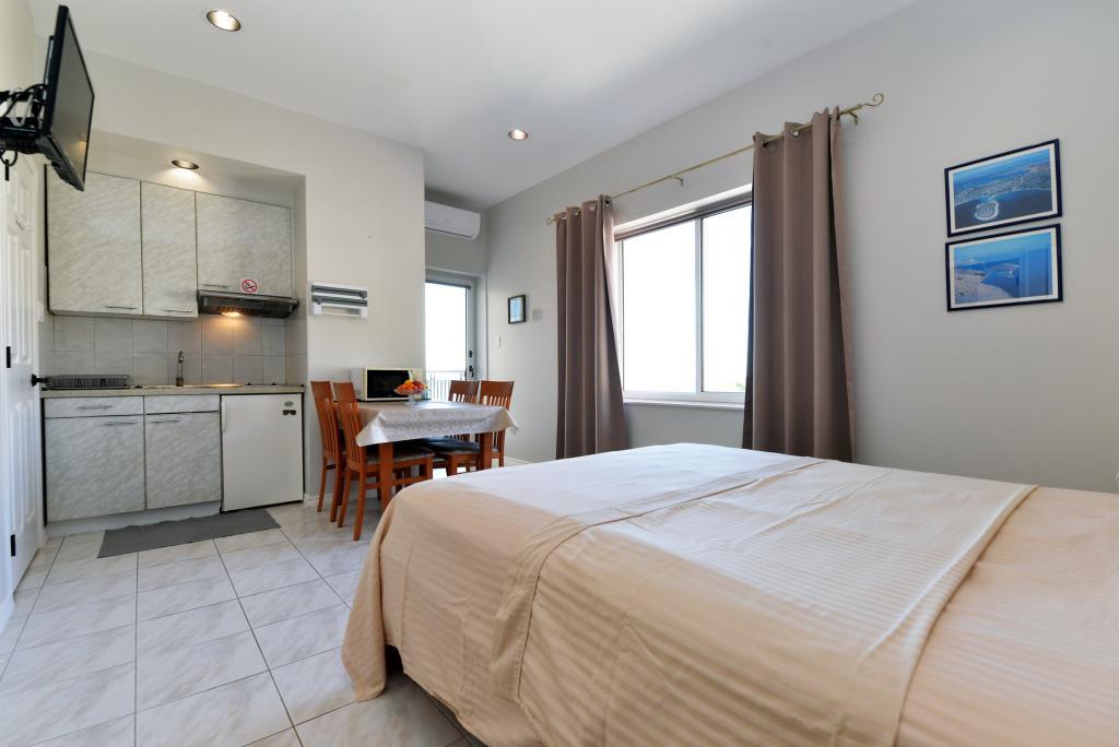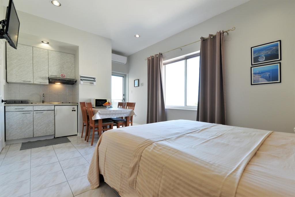 Krásný výhled, milý a vstřícný domácí, v apartmánu vše potřebné, nic nám nechybělo, tichá ulice ... Moře hned přes silnici, skalnatá pláž, na blízkou oblázkové pláže, restaurace. Byli jsme s celou rodinou, mohu vřele doporučit.