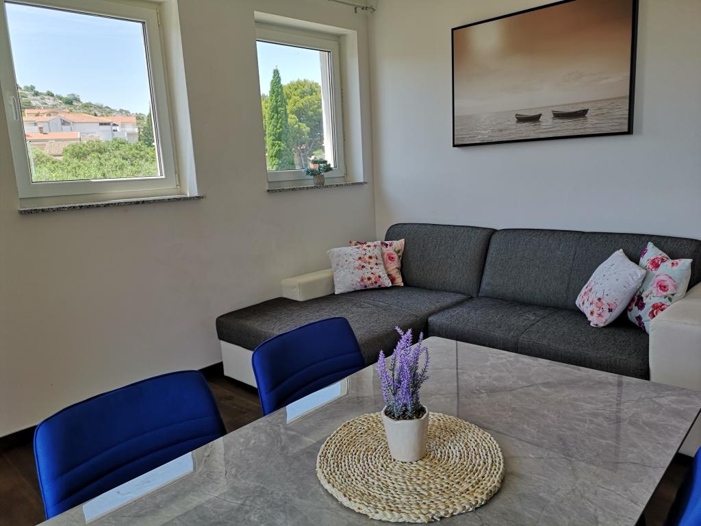 Villa Tea se skládá ze šesti ubytovacích jednotek. Apartmány mají jednu nebo dvě ložnice, koupelnu, obývací pokoj s kuchyní a jídelnou a terasu s krásným výhledem na moře. Apartmány jsou plně vybavené. Každý apartmán má vlastní parkovací místo, bezplatné Wi-Fi a klimatizaci. Nejbližší písečná pláž Slanica je vzdálena pouhých pět minut od domu. Pokud se naopak rádi projdete po cestě, nad kterou visí borové větve a zpříjemní vám procházku, asi deset minut od Slanice je pláž Podvrška s nádhernou tyrkysovou barvou moře. V blízkosti je obchod a do centra města je to pouhých 15 minut. Pokud můžete, doporučujeme navštívit národní parky Kornati a řeka Krka, kaňon řeky Zrmanja a přírodní parky Vranské jezero a Telaščica.