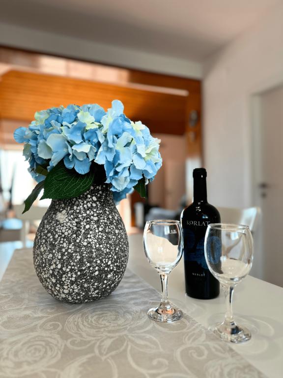 Nádherný výhled na ostrovy Kornati, zejména západy slunce jsou úžasné, čistý dobře vybavený apartmán 5 minut chůze od pláže Slanica. Hostitel byl velmi milý a ochotný. Z celého srdce to všem doporučuji.