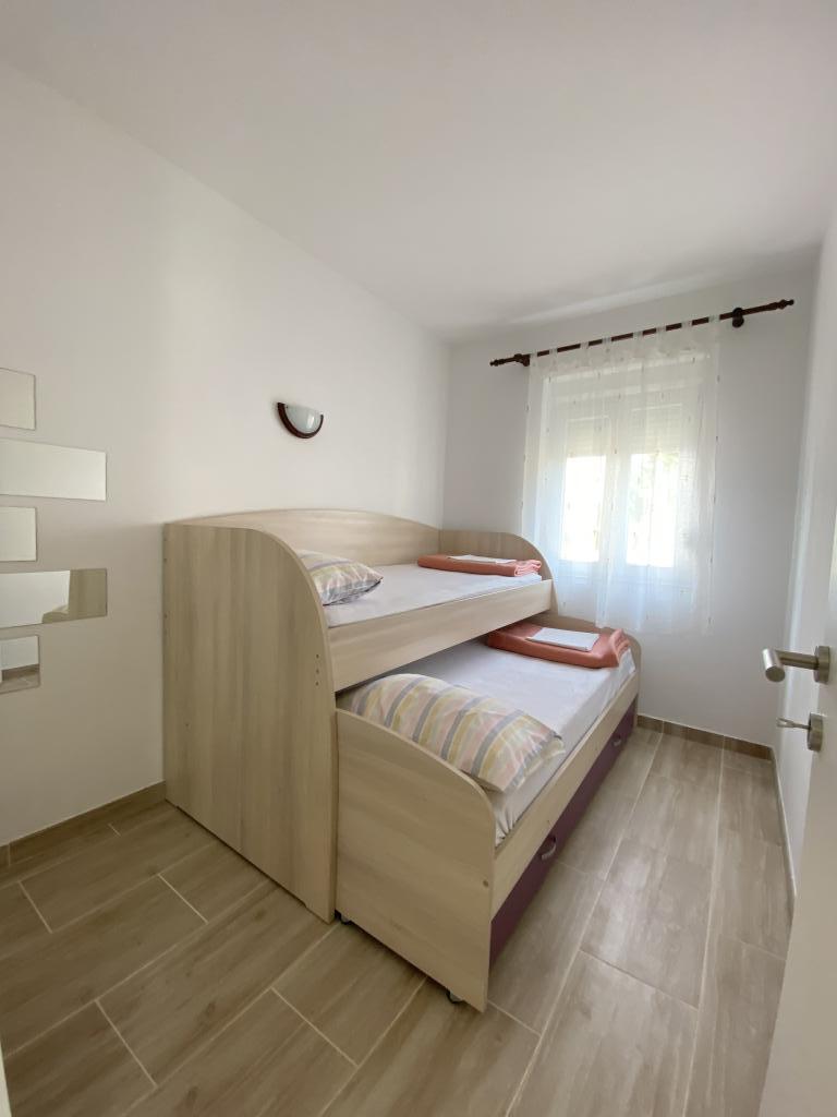 Nabízíme komfortní apartmány až pro 6 osob. Každý apartmán má plně vybavenou kuchyň, koupelnu, obývací pokoj, ložnice a soukromý balkon. U apartmánů v přízemí máte k dispozici dvůr se zahradou, grilem, stolem a židlemi. Apartmány jsou jen 150 metrů od jedné z nejkrásnějších pláží na Jadranu.Ve městě Murter najdete vše, co potřebujete pro příjemnou dovolenou. Kromě mnoha restaurací a kaváren je zde několik supermarketů, pekáren, řeznictví, tržnice, poliklinika, lékárna, pošta, banka, bankomaty, čerpací stanice, kostel, kino, marina, potápěčské kluby, sportoviště a hřiště pro děti. Můžete si pronajmout loď, skútr, moped nebo kolo. Nabízí se také výlety lodí do národního parku Kornati a nedaleko je také národní park Krka. Doporučujeme také několik vyhlídek, ze kterých si můžete vychutnat krásný výhled na místo, okolní ostrovy a Kornati. Apartmány se nacházejí u samého vchodu do Murteru. Nacházejí se mezi pláží "Čigrađa", kopcem "Raduč"