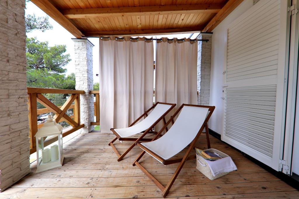 Mobilní domy v kempu Lostura se nacházejí v bezprostřední blízkosti jedné z nejkrásnějších pláží na Jadranu, Slanice!. Mobilní dům se nachází pouhých 30 m od moře a 200 m od písečné pláže Slanica. Dům má terasu o rozloze 40 m2 a velikosti 20 m2. Dům má dvě ložnice, jednu s manželskou postelí (160x200) a pokoj se dvěma samostatnými lůžky (80x200). V obývacím pokoji je rohová pohovka, kterou lze použít jako přistýlku pro jednoho dospělého nebo dvě malé děti. Kuchyň je plně vybavena všemi potřebnými spotřebiči (lednice s mrazákem, trouba, mikrovlnná trouba, myčka nádobí, varná konvice, kávovar). Koupelna se sprchou, pračkou, fénem, koupelnovými doplňky. V obývacím pokoji je TV se satelitním přijímačem, bezplatný internet, klimatizace pro chlazení a topení. Na terase je jídelní stůl se židlemi a lehátko pro opalování a užívání si krásného výhledu na Kornatské ostrovy a pláž Slanica. Parkovací místo se nachází v bezprostřední blízkosti domu.