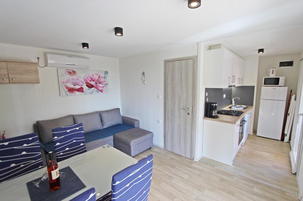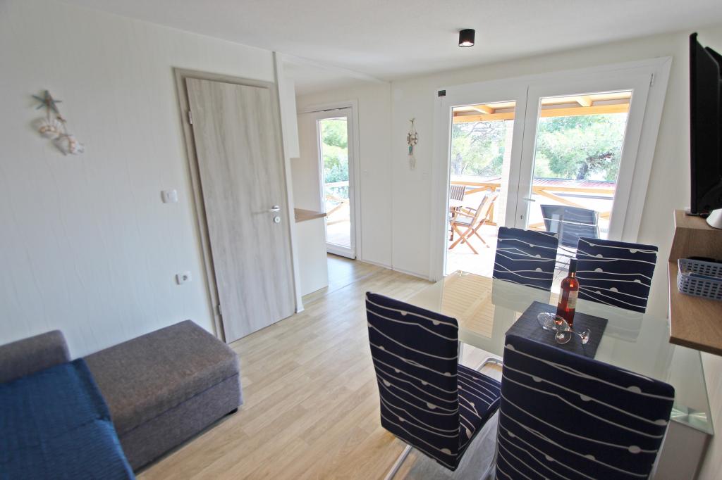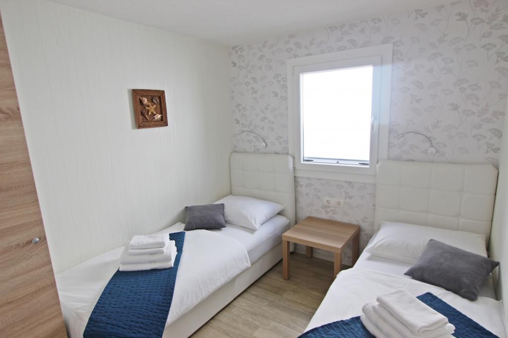 Mobilní domy VEGROS se nacházejí 30 m od moře a 200 m od krásné pláže Slanica. Domy o rozloze 40 m2 obsahují 1 ložnici s manželskou postelí, 1 ložnici s oddělenými postelemi, obývací pokoj s rozkládací pohovkou pro dvě osoby, toaletu se sprchou a dobře vybavenou kuchyň. (trouba, myčka, mikrovlnka, kávovar, rychlovarná konvice). Terasa 20 m2 poskytuje pohodlné ubytování pro 6 osob. V obývacím pokoji je satelitní TV s plochou obrazovkou. Hosté mají k dispozici bezplatné Wi-Fi a parkování zdarma. Součástí ubytování je kavárna a možnost využití sdíleného plynového grilu. Do centra města je 1, 5 km příjemná procházka nebo 2, 0 km autem. Mobile Homes Vegros je vzdálený 24 km od Vodice, 36 km od Šibeniku a 72 km od historického města Zadar. Nejbližší letiště je letiště Zadar - Zemunik, 68 km od hotelu.