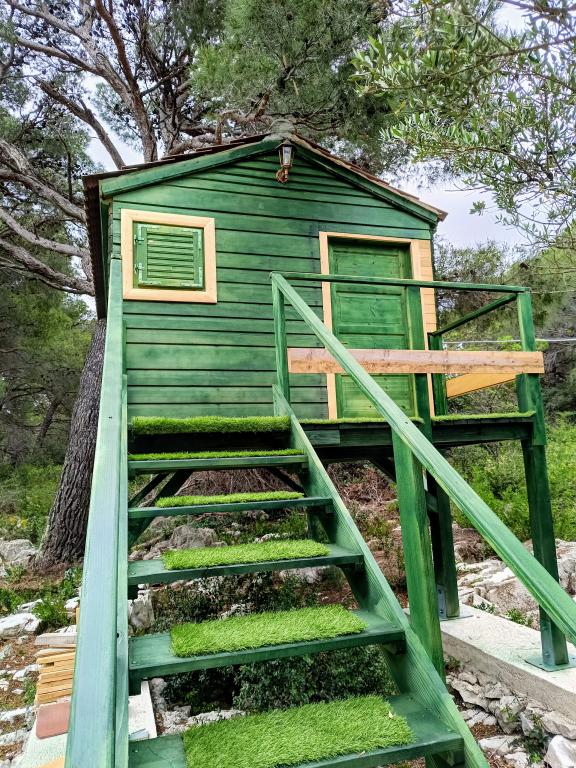 Zen Resort se nachází na ostrůvku Mali Vinik v zátoce Hramina nedaleko centra Murteru, kam se lze dostat lodí, plavba trvá 5 minut. Ubytování se skládá ze dvou budov, kamenného domu o rozloze 40 m2 a pomocného dřevěného (tepelně izolovaného) "domečku na stromě" o rozloze 9 m2, který slouží jako ložnice pro dvě osoby (příplatek - 60 eur za noc). Dřevěný dům je vybaven elektřinou 220 V, smart TV, BT reproduktorem, ventilátorem a klimatizací. Hlavní, kamenný dům se skládá z ložnice, která se nachází na galerii se smart TV, na které se mohou ubytovat 2 dospělí. V obývacím pokoji je rozkládací pohovka, kterou lze použít jako postel pro dvě osoby, vybavená osvětlením, TV a soundbarem. Koupelna je vybavena toaletou, umyvadlem a prostorným sprchovým koutem. Balkon/terasa má rozlohu 40 m2. Rybářský dům je vybaven dvěma televizory, IPTV, klimatizací, vytápěním/chlazením a wifi. Parkování je zajištěno a je zahrnuto v ceně. Rybářský dům má vlastní přístaviště pro lodě.