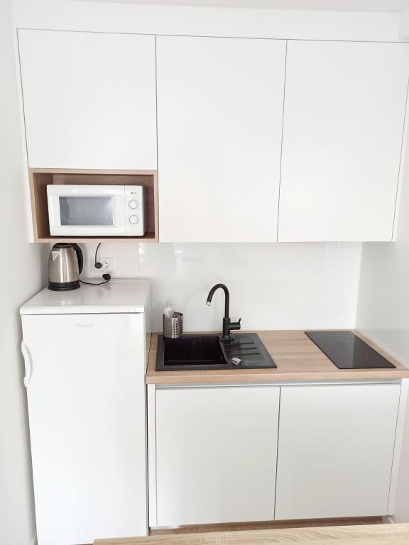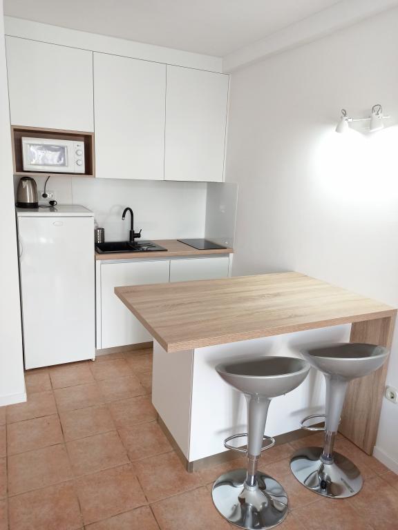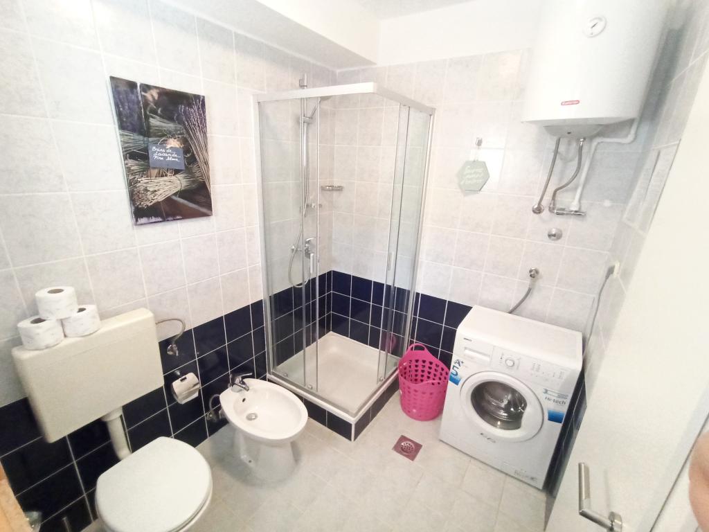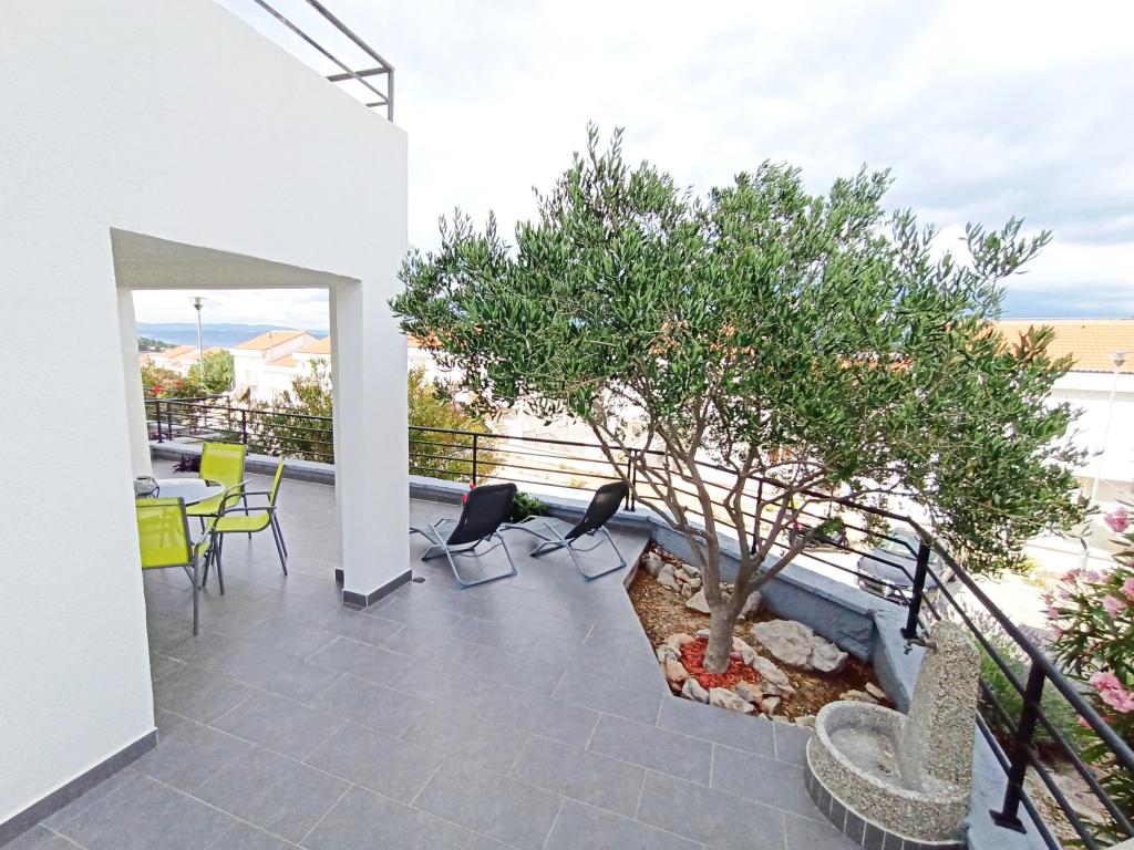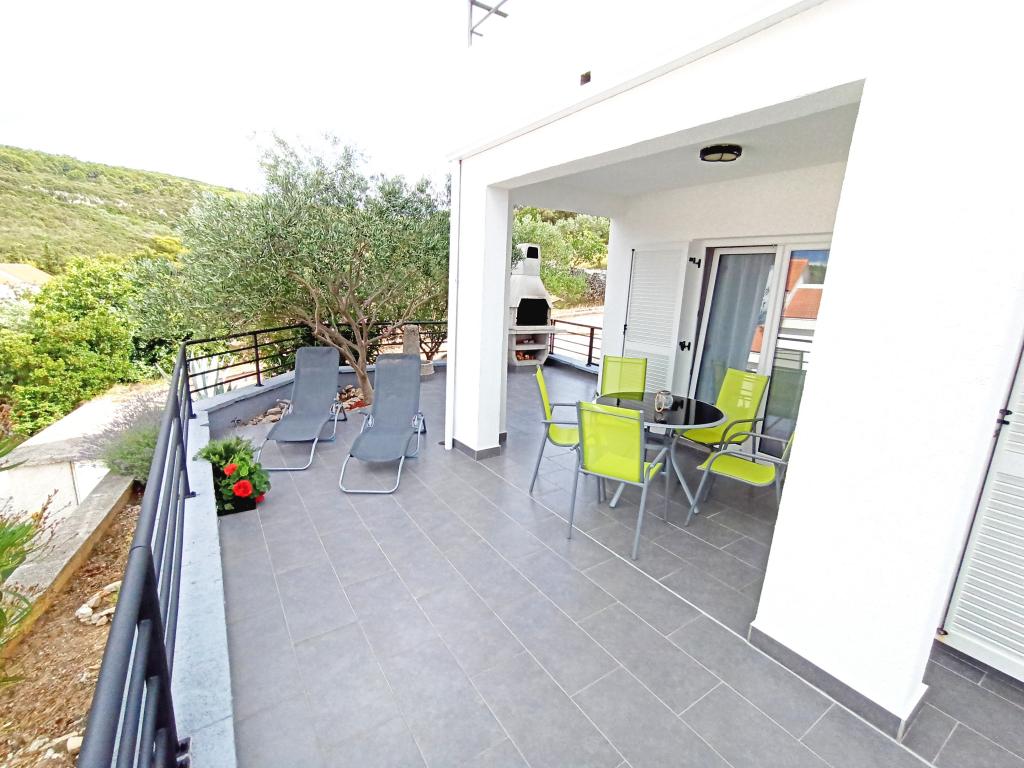 Plně a moderně vybavený apartmán se nachází ve zvýšeném přízemí malého domu. Byt se skládá z: Kuchyně: vybavená vším potřebným pro příjemný pobyt: - Obývací pokoj s klimatizací a LCD TV. V obývací části je také pohovka, kterou lze v případě potřeby proměnit v pohodlnou postel. -Kompletně nová kuchyně, plně vybavená (zahrnuje sporák, myčku, troubu, kompletní nádobí, mikrovlnku). Skládá se ze 2 ložnic: Pokoj 1: sestává z jedné manželské postele a jednoho samostatného lůžka Pokoj 2: sestává ze 2 samostatných lůžek WC-sprchový kout, se všemi hygienickými prvky a pračkou Zvláštností apartmánu je velká terasa na jižní straně, kterou si můžete užívat po celý den. Na terase je venkovní jídelní set a gril. Na terase je velký olivovník, který poskytuje přirozený stín po celý den. Přímo před bytem je soukromé parkoviště.