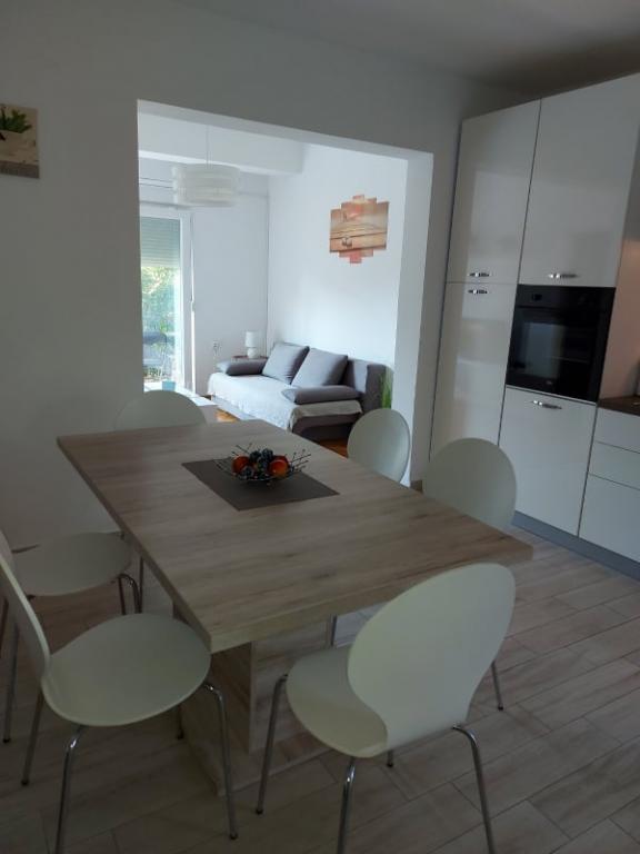 6 osob (3 generace) + 1 pes strávilo naši 10denní dovolenou v apartmánu. Byt je prostorný, dvě koupelny byly opravdu užitečné. Podle našich dosavadních zkušeností bylo vybavení kuchyně nejlepší: mnoho hrnců, pánve, struhadlo na sýr, misky atd. Mohli jsme i péct cukroví. Pohodlně se vejdeme i k jídelnímu stolu. Pračka, myčka, toustovač, mikrovlnná trouba, vysoušeč vlasů atd. Hostitelé myslí i na důležité drobné doplňky, jako je repelent proti komárům, textilní ubrus, dezinfekční hadřík. Po příjezdu byl na stole košík s ovocem, v lednici chorvatské pivo, víno, nealko a minerálka. Hostitelé jsou velmi milí, flexibilní a pohostinní lidé! K moři je to opravdu jen pár kroků.