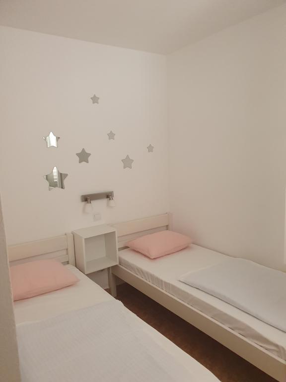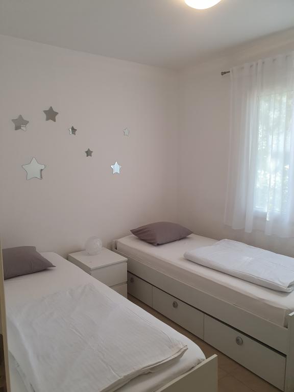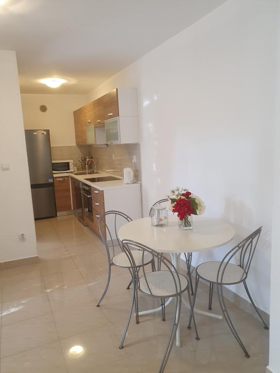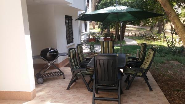 Plně vybavené a zařízené apartmány pro pohodlný pobyt až pro 6 osob, umístěné v borovém lese. Apartmány jsou 3 minuty chůze od moře a krásné pláže, na kterou se dostanete přes borový les. Apartmány se skládají ze dvou pokojů - jeden s manželskou postelí a jeden se dvěma samostatnými lůžky, obývacího pokoje s rozkládací pohovkou a LCD TV, jídelny (větší apartmán - vznikl adaptací dvou menších apartmánů na jeden velký byt o velikosti 60m2), koupelny, kompletní kuchyně se spotřebiči jako je varná konvice, kávovar (ve větším apartmánu pračka a nádobí) a terasy s možností grilování. Každý z našich apartmánů je vybaven ložním prádlem, ručníky, kuchyňským náčiním a spotřebiči nezbytnými pro váš bezproblémový pobyt. Celkové prostředí (borový les, blízkost pláže a moře, ochrana promenády od silnice) představuje ideální prostředí pro relaxaci a rodinnou dovolenou s malými dětmi nebo domácím mazlíčkem.