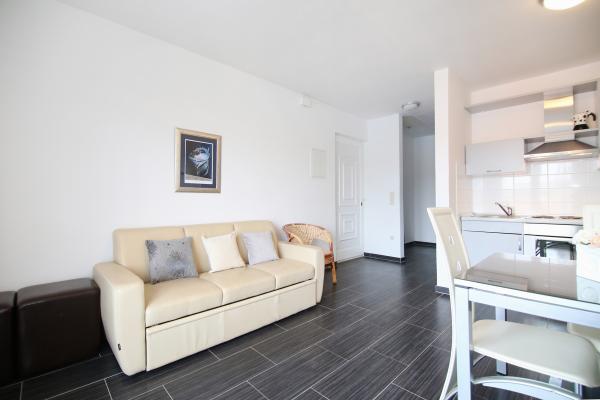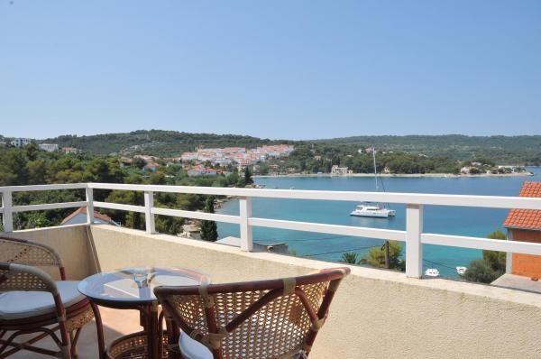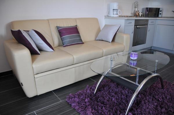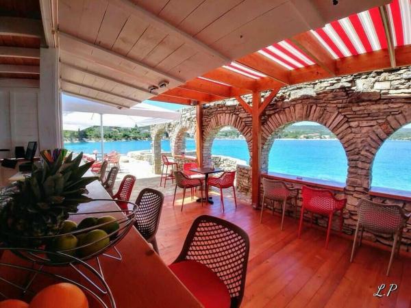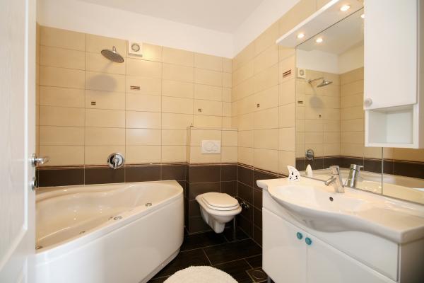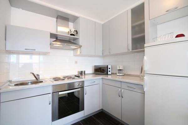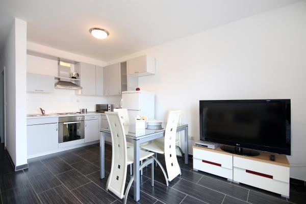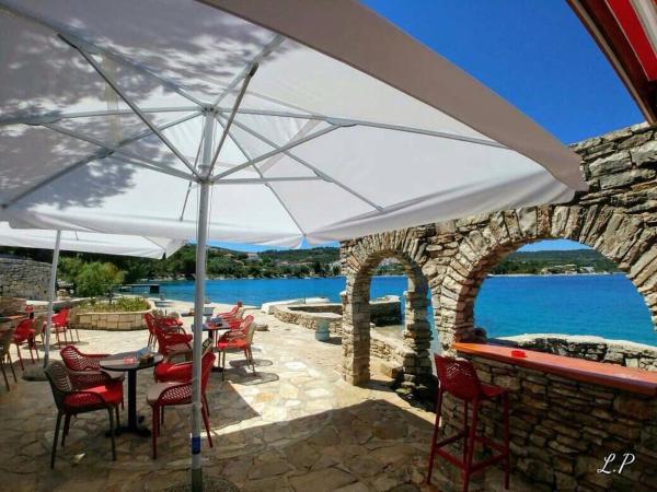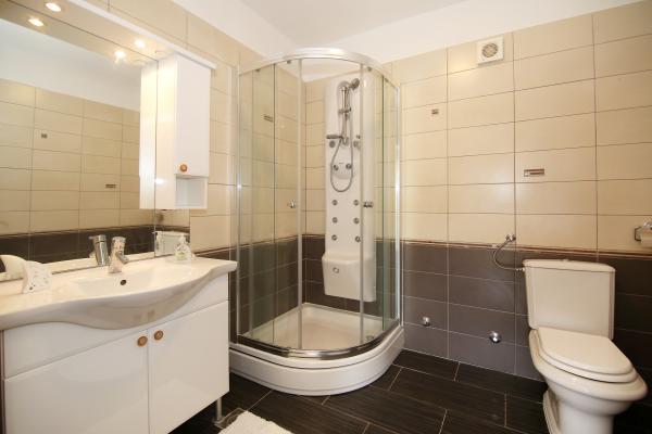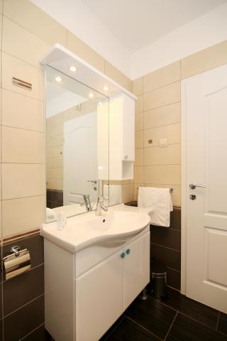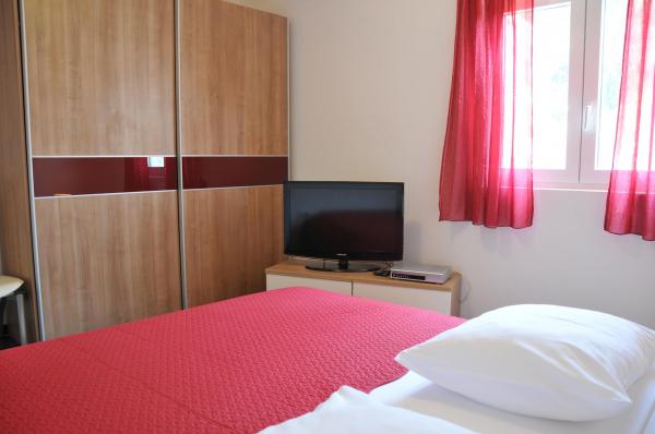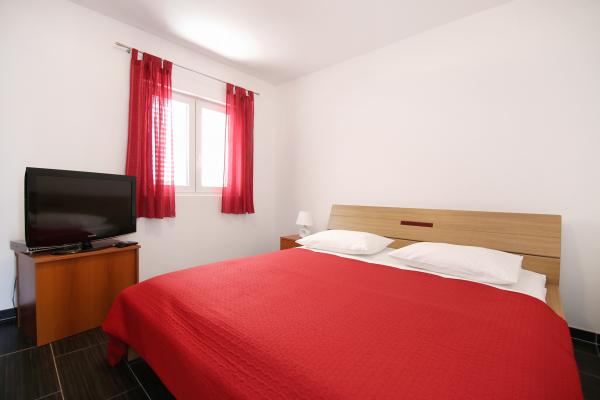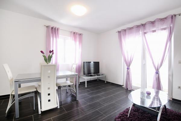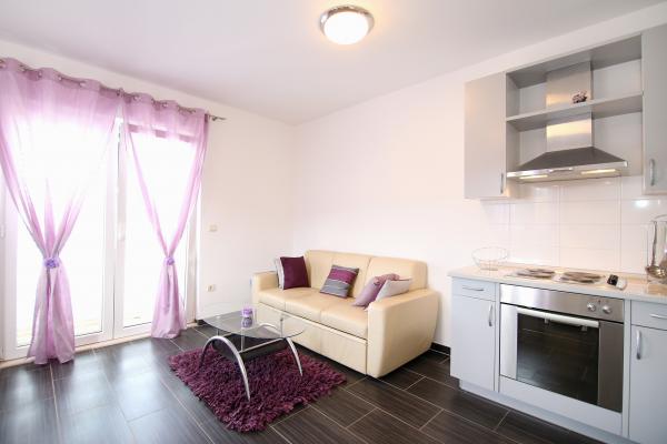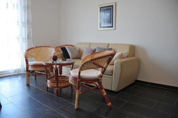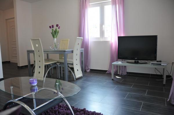 Plně vybavené a moderní apartmány v rodinném domě jen 30m od pláže. Apartmány mají jednu a dvě ložnice, obývací pokoj s rozkládací pohovkou, plně vybavenou kuchyň a koupelnu s vířivkou. Každý apartmán má terasu nebo balkon s výhledem na moře a zahradu. Jsou vybaveny klimatizací, satelitní TV a mají bezdrátové připojení k internetu. Před domem je parkoviště pro hosty, a tam je a použít gril na zahradě. Oblázkové pláži je 250 metrů. Ve vzdálenosti 150 metrů se nachází hřiště na volejbal a dětské hřiště se nachází 200 metrů od domu. Obchod s potravinami se nachází 400 metrů od domu. Nejbližší restaurace je vzdálena 10 m od domu, zatímco ostatní barů a restaurací jen kousek.