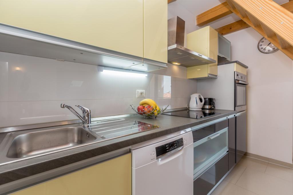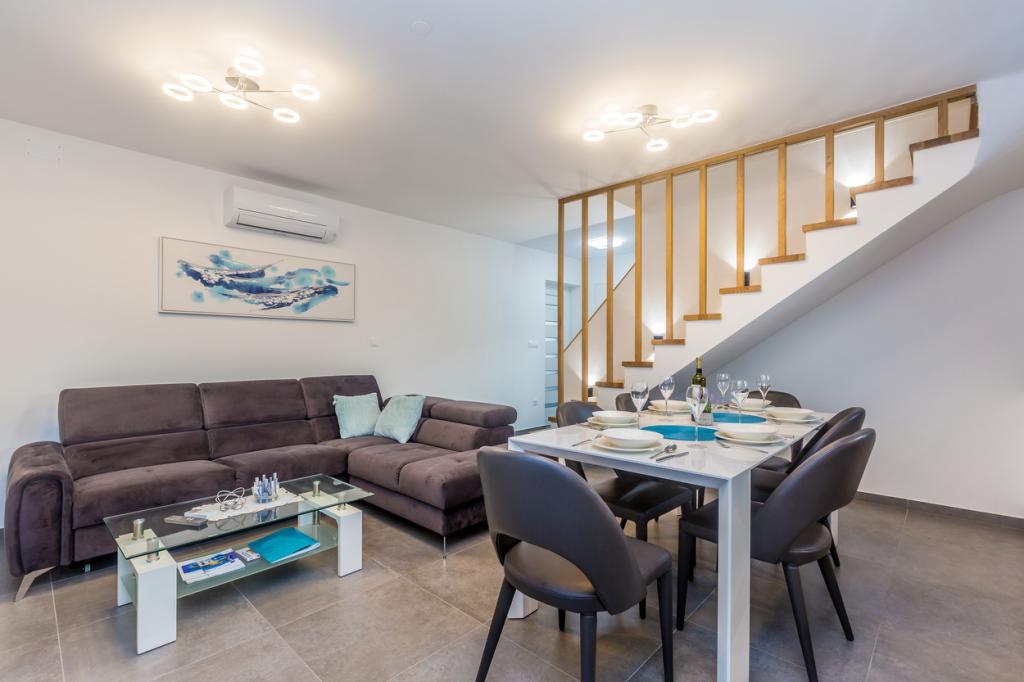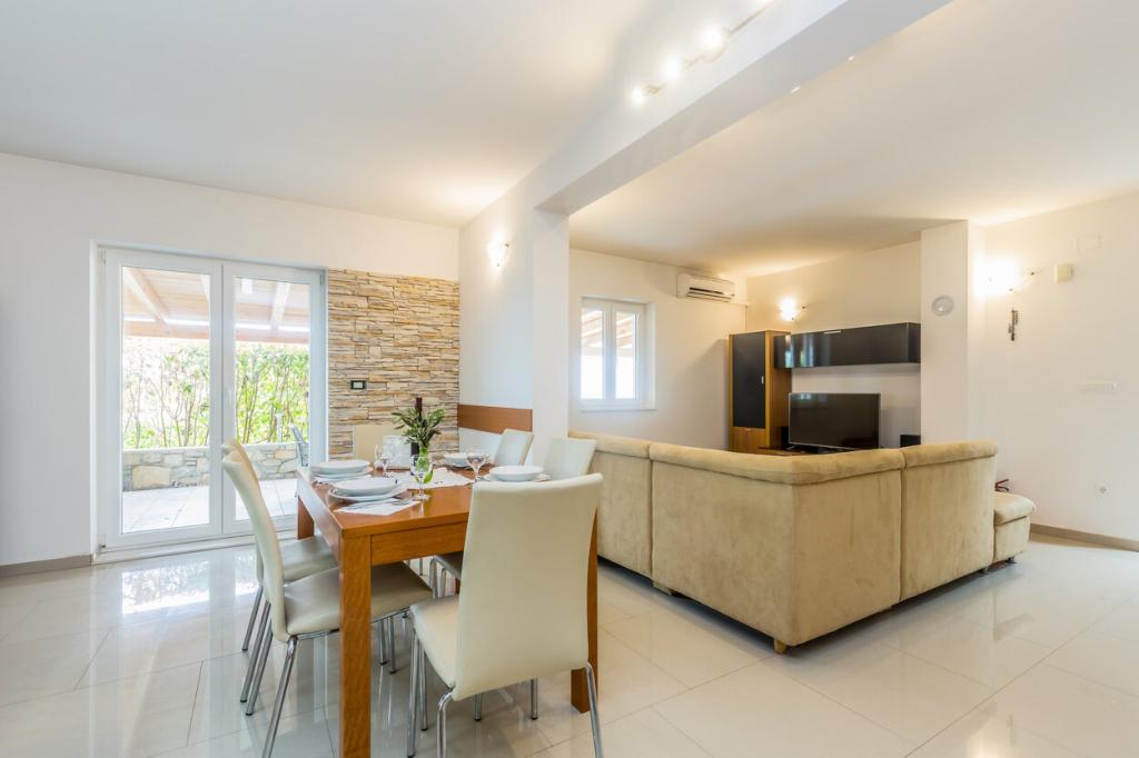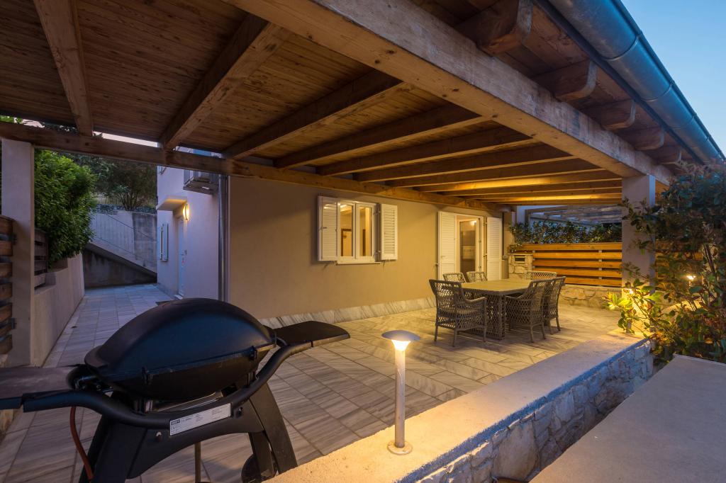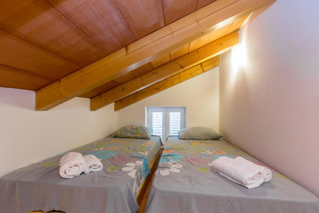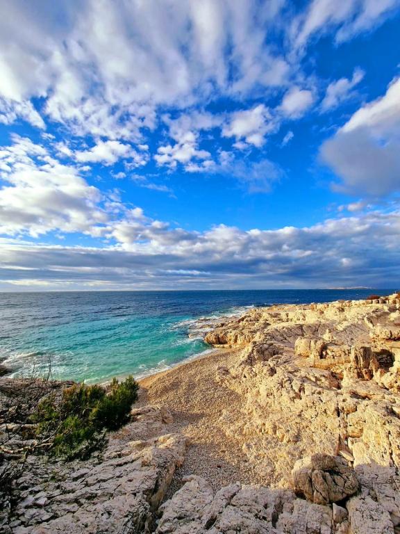 Dům se nachází v malé ulici, bez dopravy, nachází se asi 100m od centra a 300m od moře.