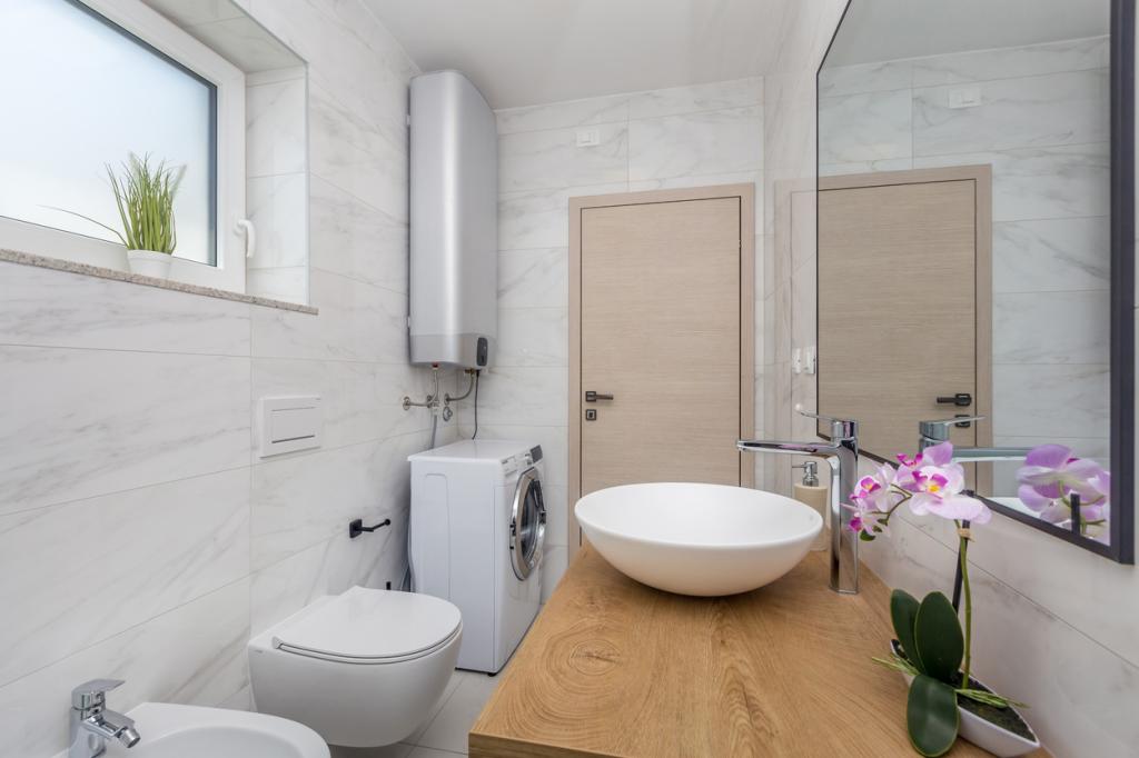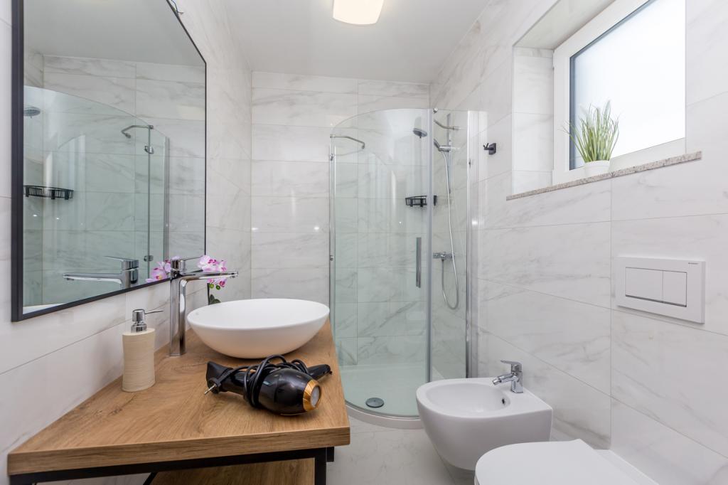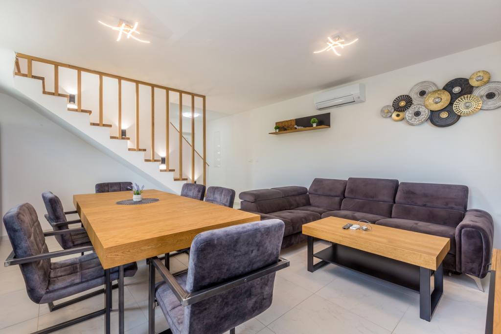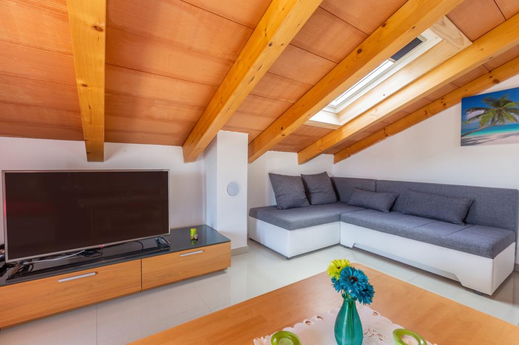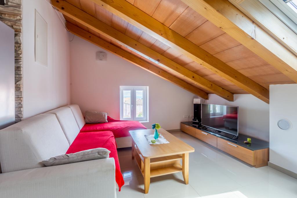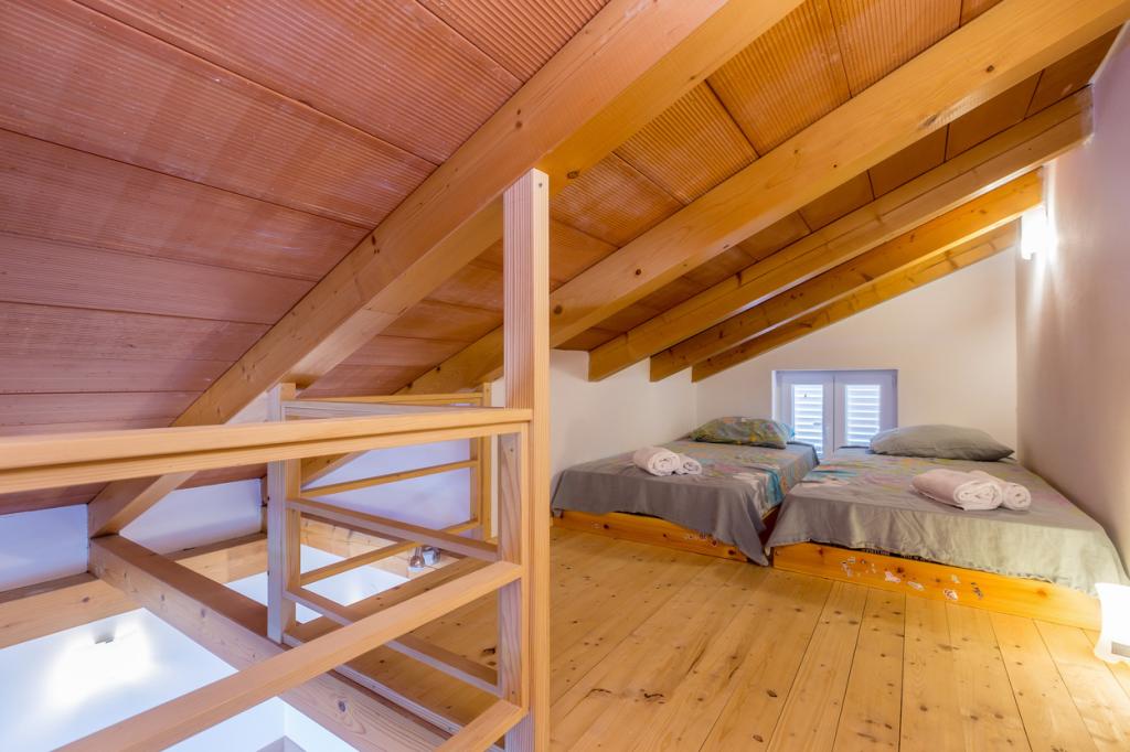 Dům se nachází v malé ulici, bez dopravy, nachází se asi 100m od centra a 300m od moře.