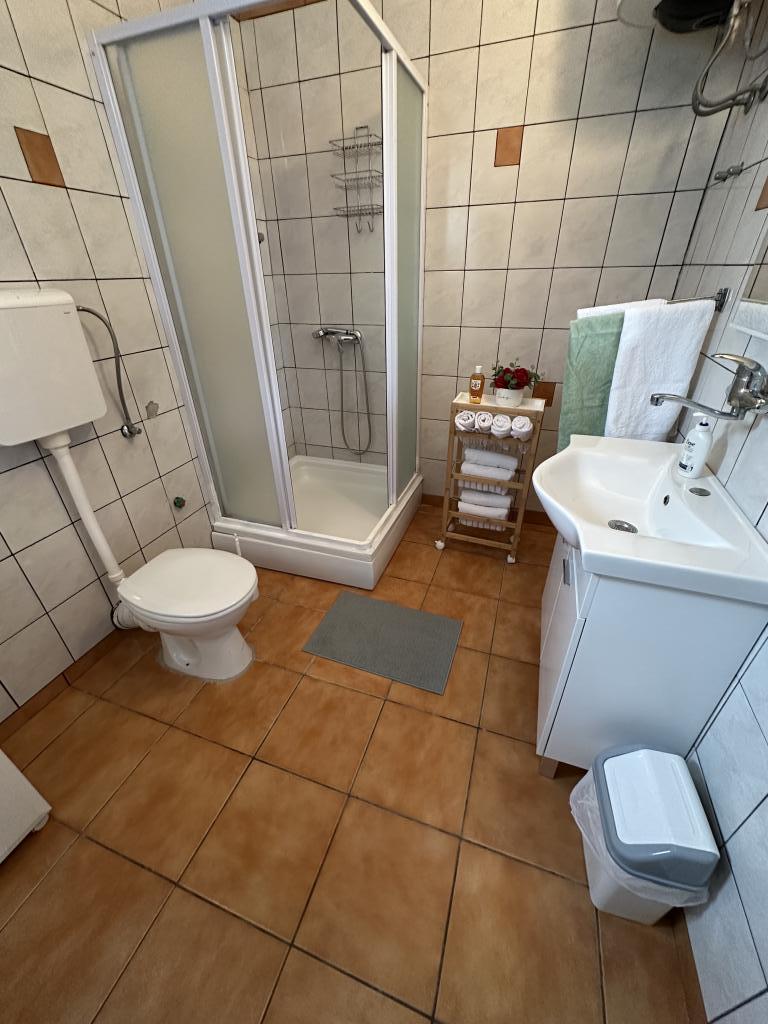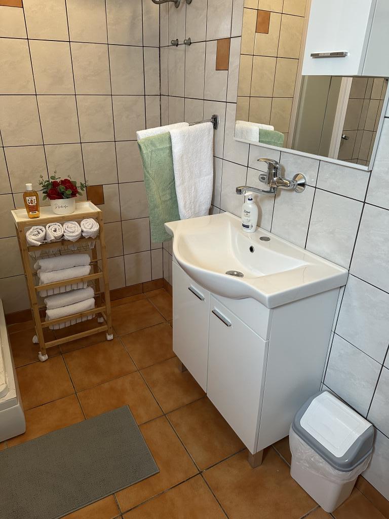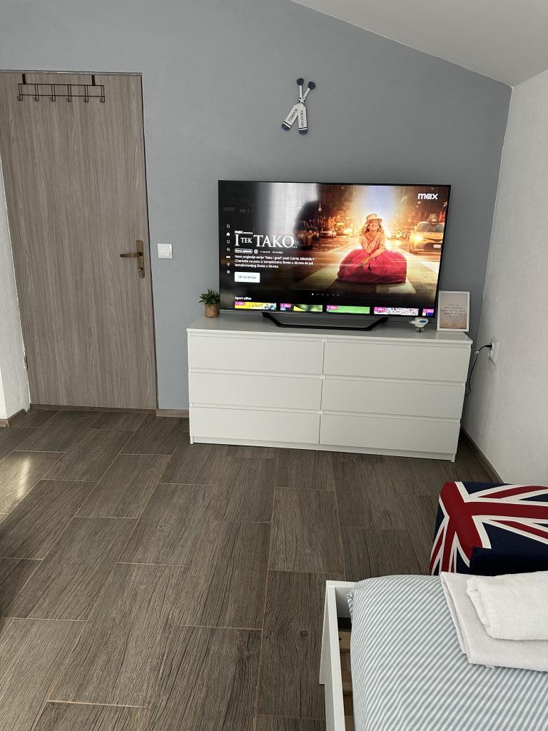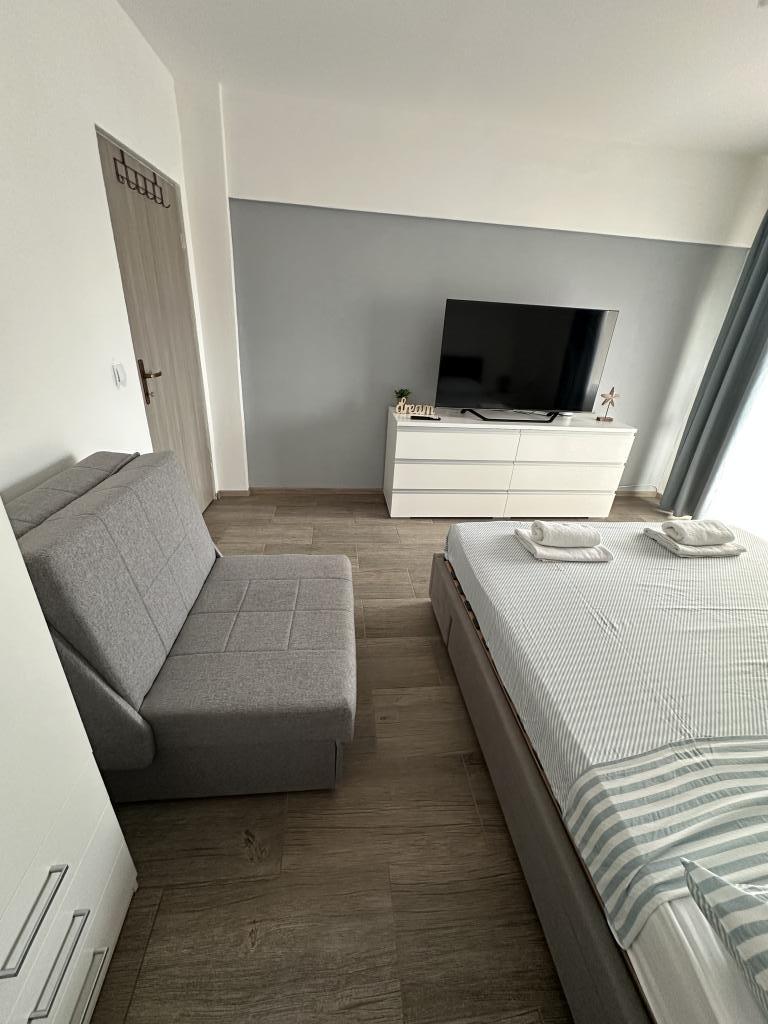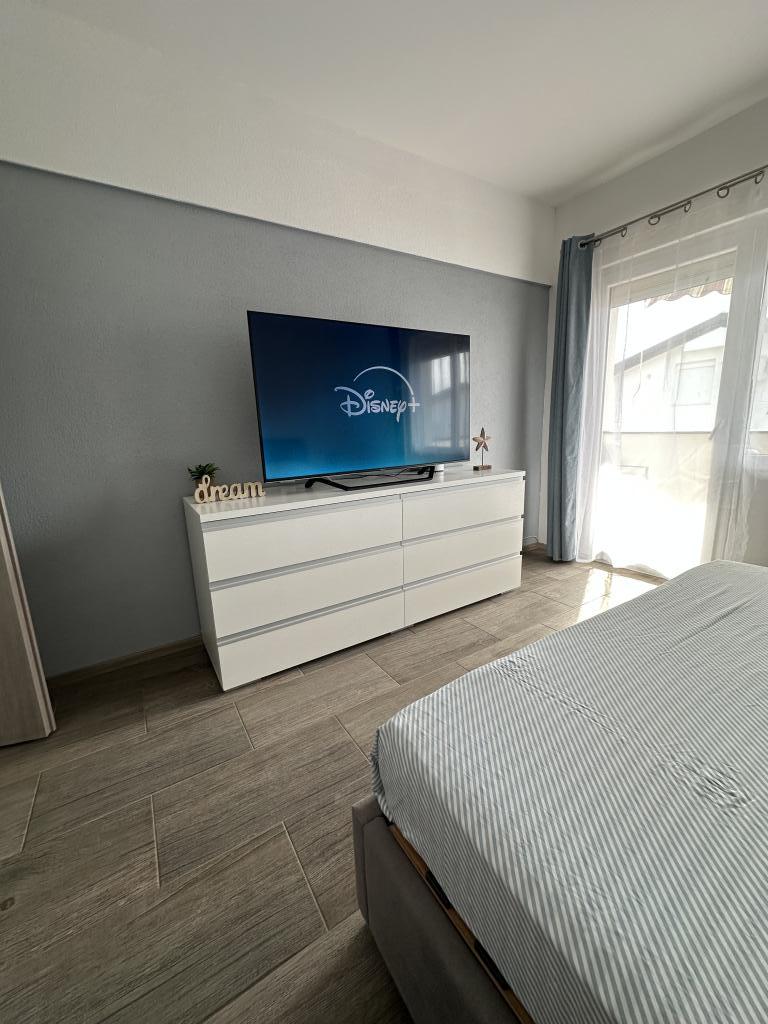 Vážení hosté, přivítá vás 75m2 velký apartmán se dvěma ložnicemi, kuchyní, koupelnou a velkou terasou s výhledem na moře a hory. Rekonstrukce je dokončena, byly zveřejněny nové fotografie. Přivítá vás mnoho nových věcí: nová fasáda, nová okna, nové dveře, nové podlahy v pokojích atd. Apartmán se nachází 70 m od moře (1 minuta). Pláž je betonová a místy oblázková. Apartmán je vybaven novými spotřebiči zakoupenými v sezóně 2024 a 2025 a zahrnuje: klimatizaci, wi-fi, smart TV s Netflixem a Disney+ v obou pokojích, myčku nádobí, rychlovarnou konvici, toustovač, pračku, mixér Nutribullet, kávovar Nespresso atd. Všechny spotřebiče jsou nové, stejně jako veškerý nábytek. Všechny streamovací služby můžete sledovat zdarma. Na hosty čeká soukromé parkování. Na dvoře je gril. Apartmán je ideální pro rodiny s dětmi. Bezplatný odběr je možný na letišti nebo autobusovém nádraží. Horní apartmán je určen pro hosty, majitelé bydlí ve spodním.