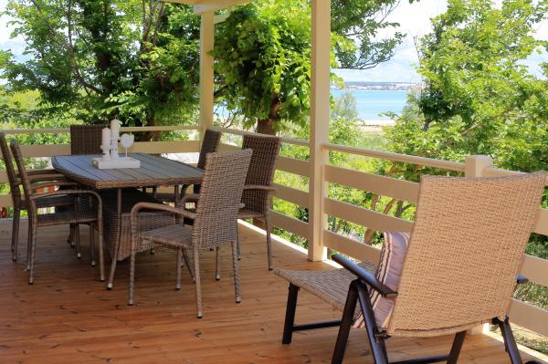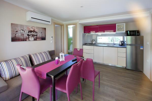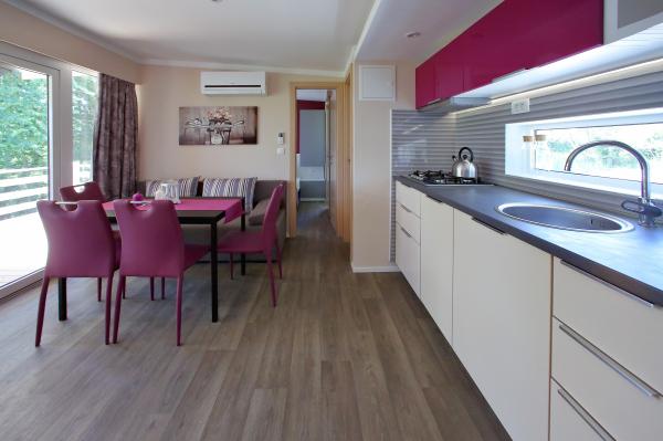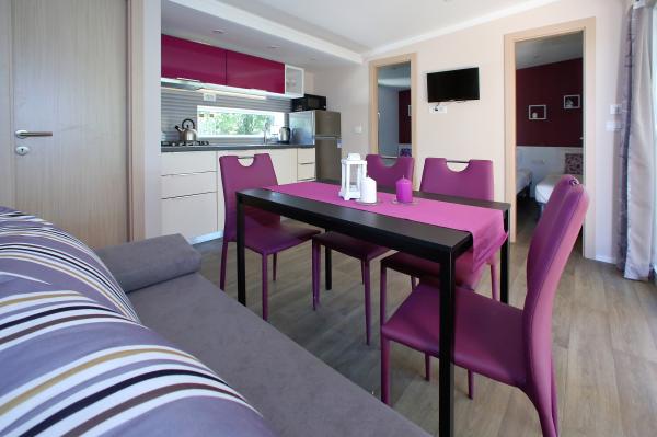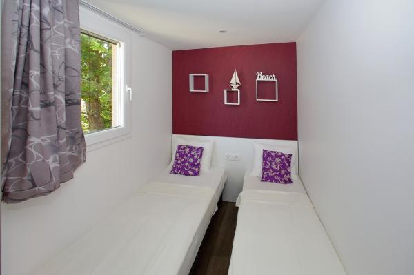 Kompletně a moderně vybavený mobilní dům ukrytý v klidné a tiché části kempu Nin. Z velké terasy je výhled na slavnou Queen's Beach. Terasa je obklopena stromy a zelení, které dále přispívají k pocitu relaxace a klidu. Je to 5 minut od pláže, 10 minut od centra a všech nezbytných zařízení.