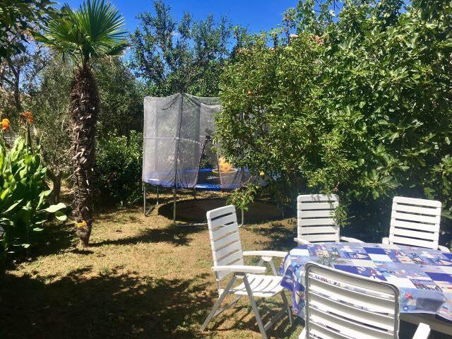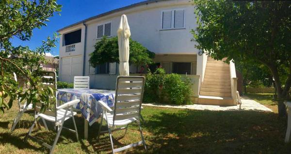Kompletně moderní apartmán v přízemí, dvě samostatné ložnice s manželskými postelemi, krásná velká zahrada. Objekt se nachází 2 min. pěšky k moři a na pláž. Terasa-lodžie s venkovním nábytkem a zahradním nábytkem s částí zahrady pouze pro Vaše užívání, gril a trampolína pro děti. Domácí mazlíčci jsou vítáni. Parkování ve dvoře. Klimatizace, pračka.
