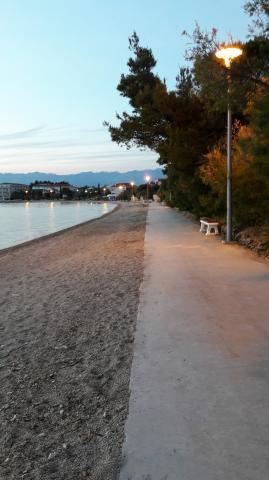 Apartmán Horvatić se nachází v obci Zukve, 3 km od historického města Nin a 15 km od Zadaru. Nachází se v přízemí dvojdomku, má dvě ložnice (2 plus 2), vybavenou koupelnu a kuchyň s jídelnou a terasu s jídelním stolem. Z terasy se rozprostírá zelený dvůr s grilem na dřevo a dřevěné uhlí a venkovní vyhřívanou sprchou. Apartmán je klimatizovaný a hosté mají k dispozici ložní prádlo a ručníky. K dispozici je bezplatné parkoviště. Vzdálenost od prvního obchodu je 200 m. Nejbližší betonová pláž je vzdálena 100 m a je ideální pro kotvení lodi. Dobře udržovaná oblázková pláž se nachází 350 m od apartmánu a velká pláž s přírodním pískem je vzdálena 2 km. V blízkosti jsou také přírodní pláže s lesy a skalnatými zátokami. Zukve má 4 km dlouhou promenádu podél pláže s plážovými bary a restauracemi.
