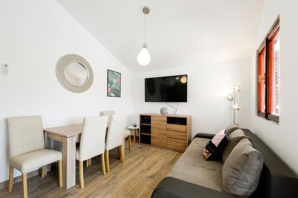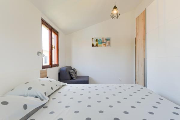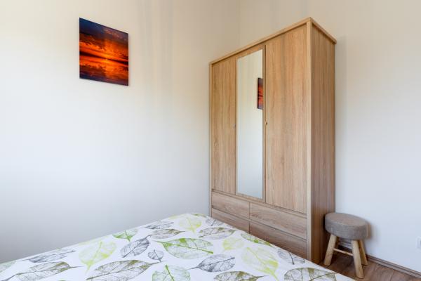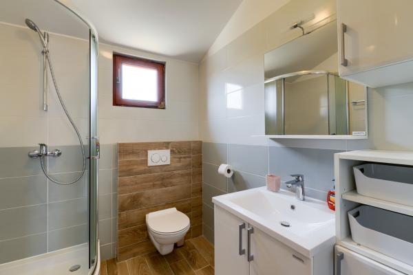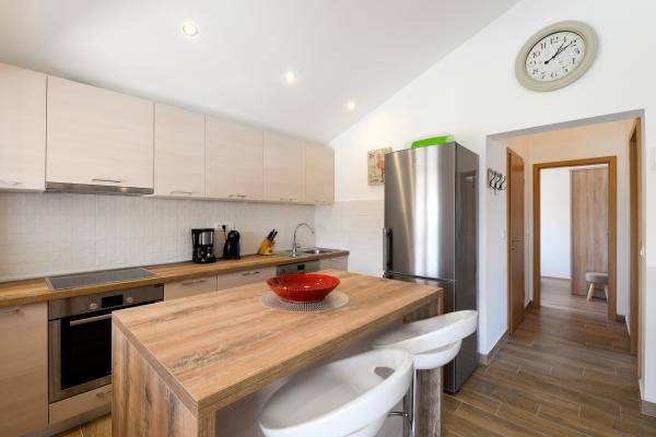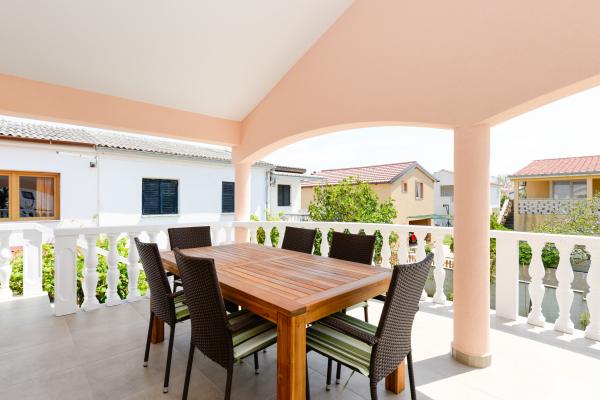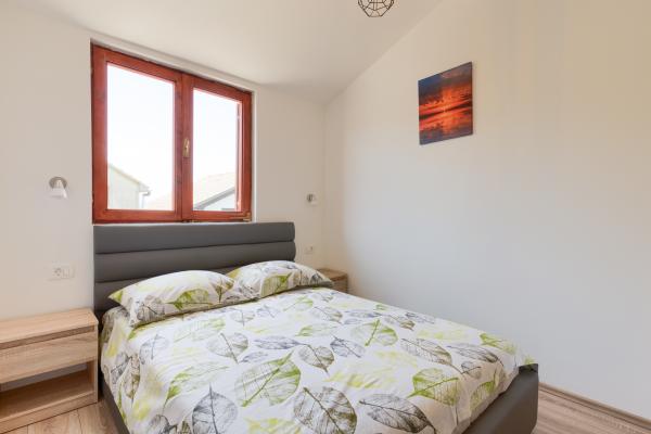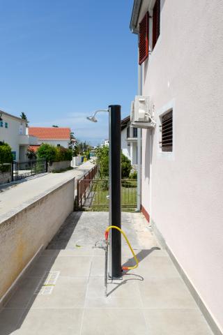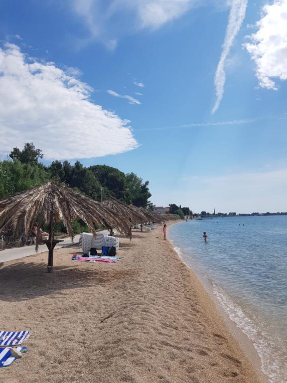 Apartmán Ruža je plně a moderně vybavený a nachází se pouhých 30 m od moře, s výhledem na moře. Velký oplocený dvůr, prostorné terasy a blízkost moře dělají z tohoto místa ideální místo pro rodinnou dovolenou, zejména s dětmi, ale i pro všechny ostatní, kteří chtějí klidnou dovolenou. Máme vlastní bójku (kotvení v moři), pokud máte motorový člun nebo člun až 7 metrů dlouhý těsně pod chatou. Pro ty, kteří se stále chtějí bavit, Nin je jen 2 km daleko, ostrov Vir 15 km, Zadar 20 km. Byt se nachází v 1. patře o celkové výměře 50 m2 s terasou 23 m2. Moderně vybavené (myčka, pračka, klimatizace, kávovar), TV, SAT, internet. K dispozici máte parkování na zahradě bytu obehnané plotem a zděným grilem.