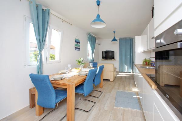 Moderně zařízený nový apartmán se nachází v klidné části starého města Nin, vzdálenost od moře je 200 metrů, zatímco centrum města Nin je vzdálené 4 minuty chůze. Byt má 150 m2, v klidném prostředí se dvěma velkými terasami, kde si můžete vychutnat slunce i klidné večery. Byt je prostorný, má velkou kuchyň / obývací pokoj / WC, tři luxusní ložnice a dvě toalety! Písečná pláž trvá 15 minut chůze a 5 minut jízdy autem. V bytě je klimatizace, pračka a parkoviště před apartmánem, všechny jsou zahrnuty v ceně!