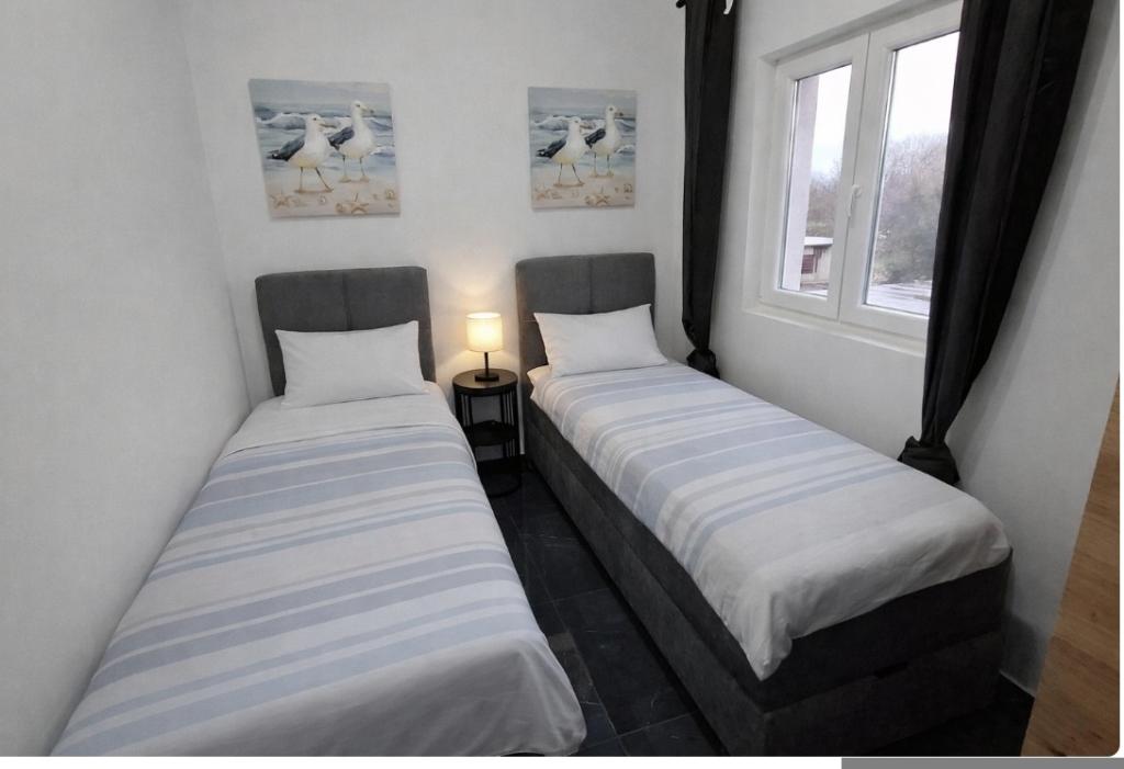 Studio, apartmán A2+2 a apartmán A4+2 se nacházejí v novostavbě. Jsou plně vybavené. Nacházejí se v klidné části obce, což vám zaručuje kvalitní dovolenou. Terasy ve všech apartmánech mají výhled na moře. Okna a balkonové dveře mají zabudované moskytiéry. Ve dvoře budovy se nachází velká zahrada s houpačkami pro děti. V blízkosti se nacházejí pláže pro každý vkus: písčitá, skalnatá, pláž u borového lesa, oblázková a betonová pláž se sprchami, šatnami, slunečníky, hřištěm na plážový volejbal, dětským hřištěm, posilovacími stroji, šlapadly.