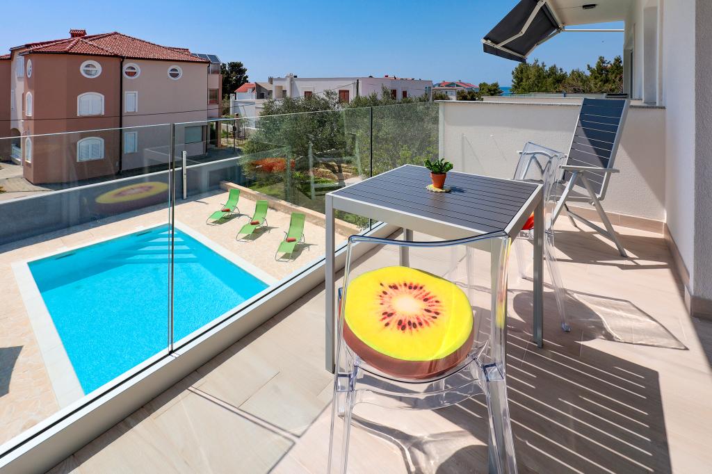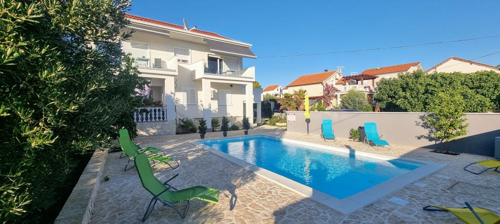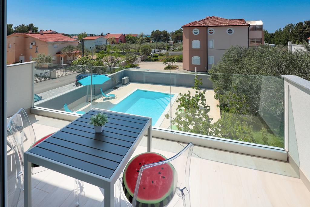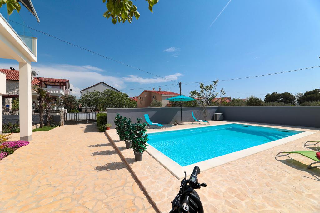 Náš dům se nachází ve velmi krásné a velmi klidné oblasti v malebném městečku Vrsi. Krásná krajina, krásná příroda, zajímavá kultura a zdravé klima jsou vlastnosti, které nás odlišují od ostatních míst. Hlavní pláž je velmi blízko našeho domu a lze se k ní dostat krátkou procházkou (80 metrů nebo 2 minuty chůze). Dům má dva moderní apartmány postavené v roce 2019. Větší apartmán "Alan 3" má 4 hvězdičky a je ideální pro velké rodiny do 6 osob, zatímco menší apartmán "Alan 2" se 3 hvězdičkami je určen pro rodiny s až dvěma dětmi nebo se může stát romantickým útočištěm pro páry v milovat. Každý apartmán má balkon s výhledem na krásnou zátoku a velký vyhřívaný bazén obklopený na jedné straně krásně upravenou zahradou s květinami a citrusovými plody a na druhé straně malým olivovým hájem, který poskytuje příjemný stín v horkých letních dnech. Terasa s posezením poskytuje pohodové chvíle během dne i letních večerů.